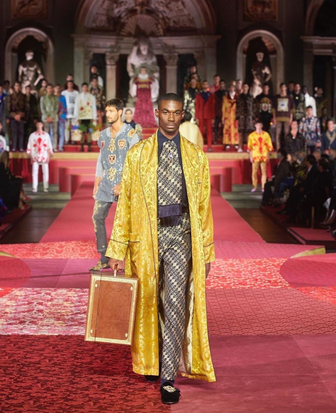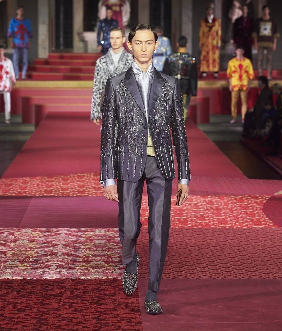 Парчовые халаты, костюмы из шелка и обилие принтов на показе Dolce & Gabbana Alta Sartoria