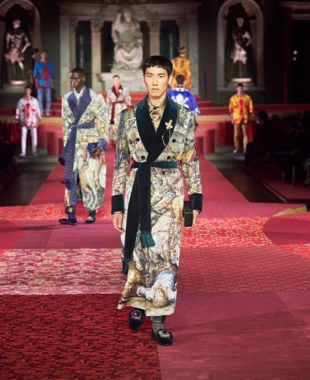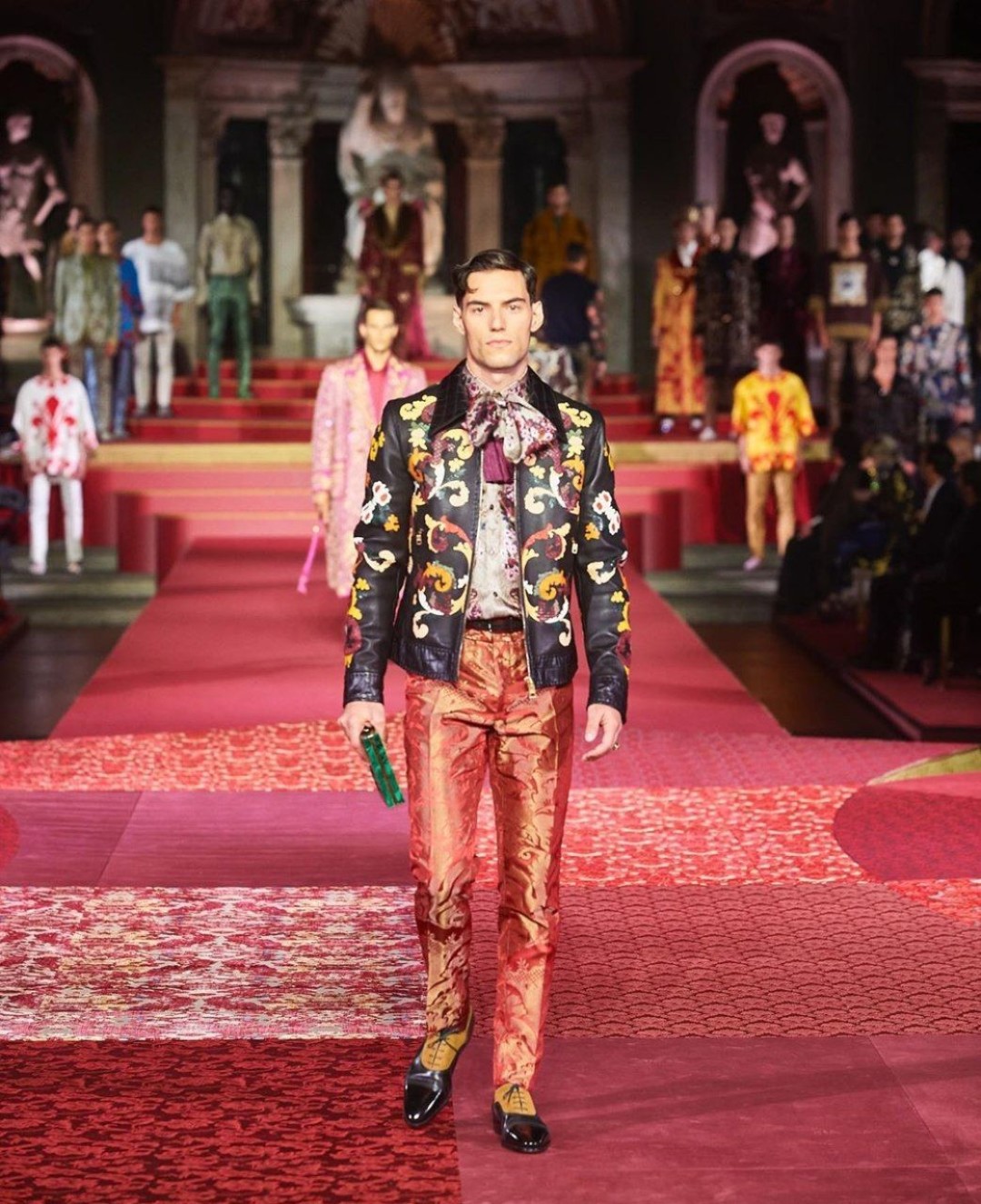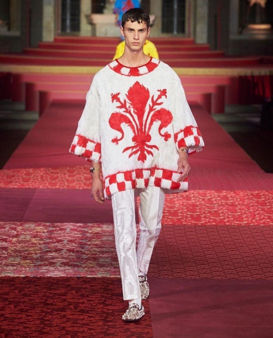 Новое шоу модного дома прошло в стенах Палаццо Веккьо, украшенных фресками эпохи Возрождения, а подиум превратился в герб Флоренции. Вторили итальянскому искусству и принты на вещах из коллекции, в которую вошли парчовые халаты, костюмы из шелка, дополненные филигранной вышивкой. Над ними Доменико Дольче и Стефано Габбана трудились вместе с флорентийскими мастерами, которые и сейчас творят с помощью техники ручной работы.