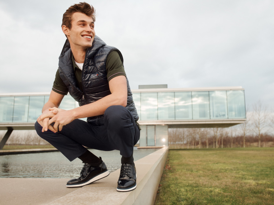 Коллекция Tommy X Mercedes-Benz основана на многолетнем партнерстве бренда с шестикратным чемпионом Формулы-1 — командой Mercedes AMG Petronas. Дизайн капсулы объединил американское спортивное наследие с инновациями и опытом участников гонок. Так результатом коллаборации стали стеганая парка, жилет, бомбер и кожаная куртка с техническими элементами: климат-контролем, перфорацией, прорезиненными лентами, застежками на липучках.