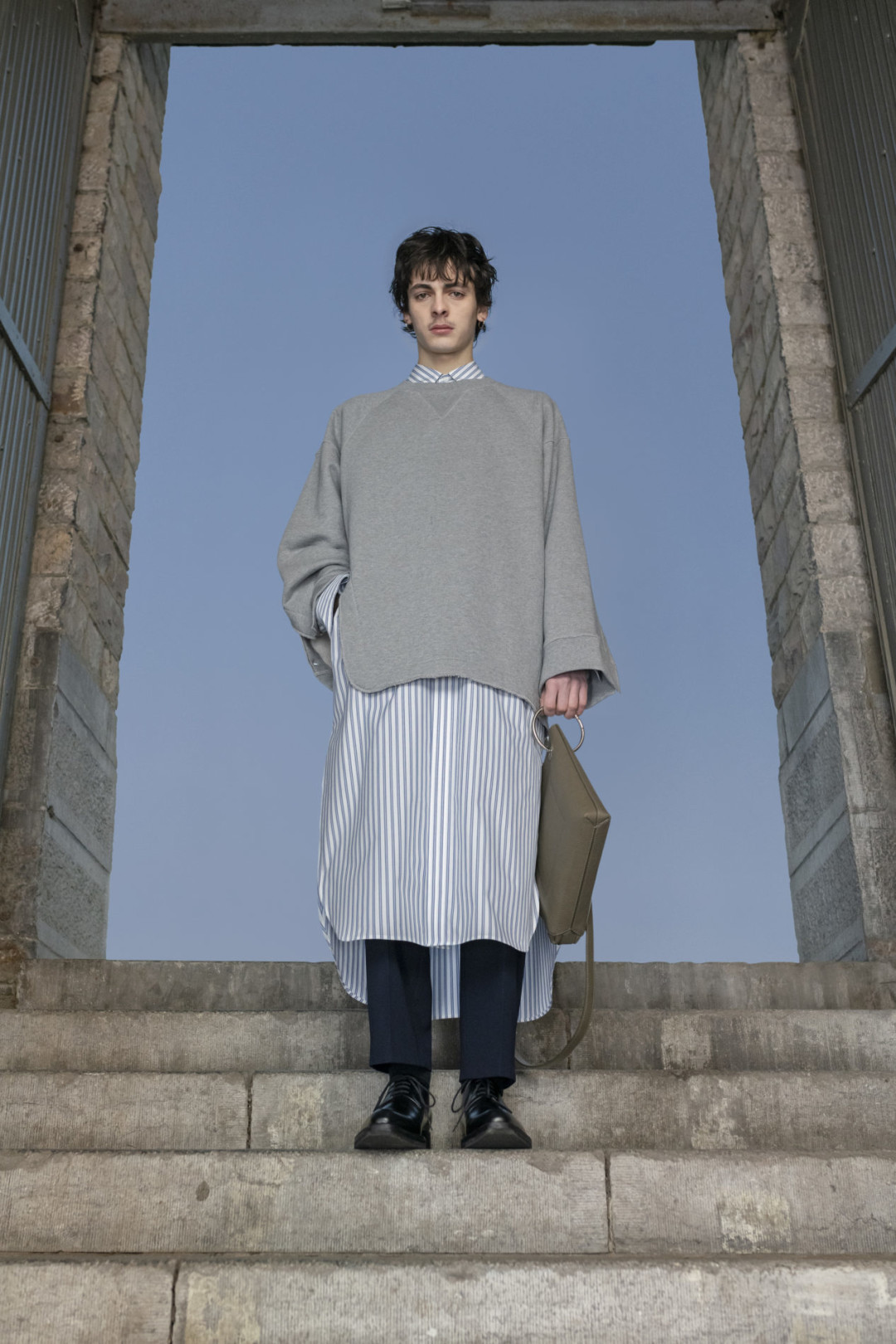 Наш любимый бельгиец представил в формате видео-презентации коллекцию осень-зима 2021-2022. Она получилась довольно базовой — с тренчами, кардиганами и костюмами классических спокойных оттенков: бежевого, голубого, темно-синего, серого и коричневого. Наряду с прямыми укороченными брюками Дрис ван Нотен рекомендует мужчинам носить и гипертрофированно широкие, максимально длинные брюки. Также в коллекцию вошли шорты и кожаные вещи.