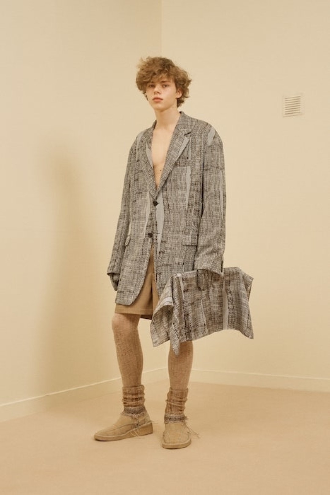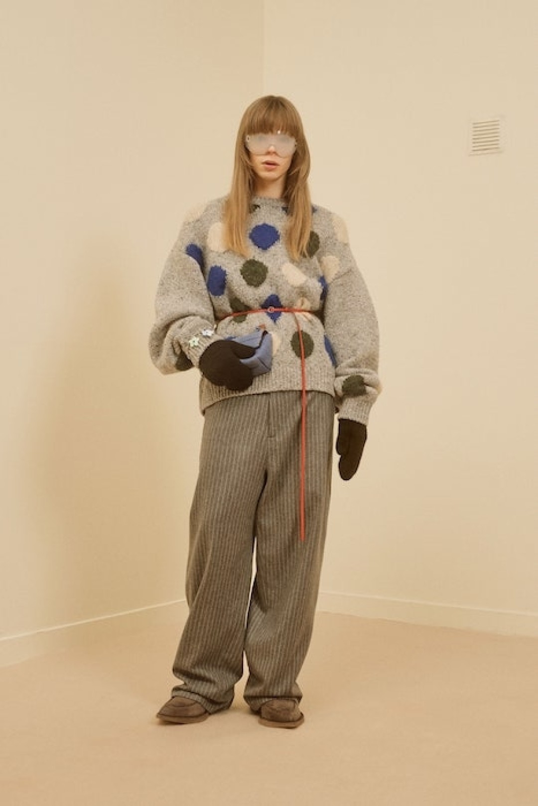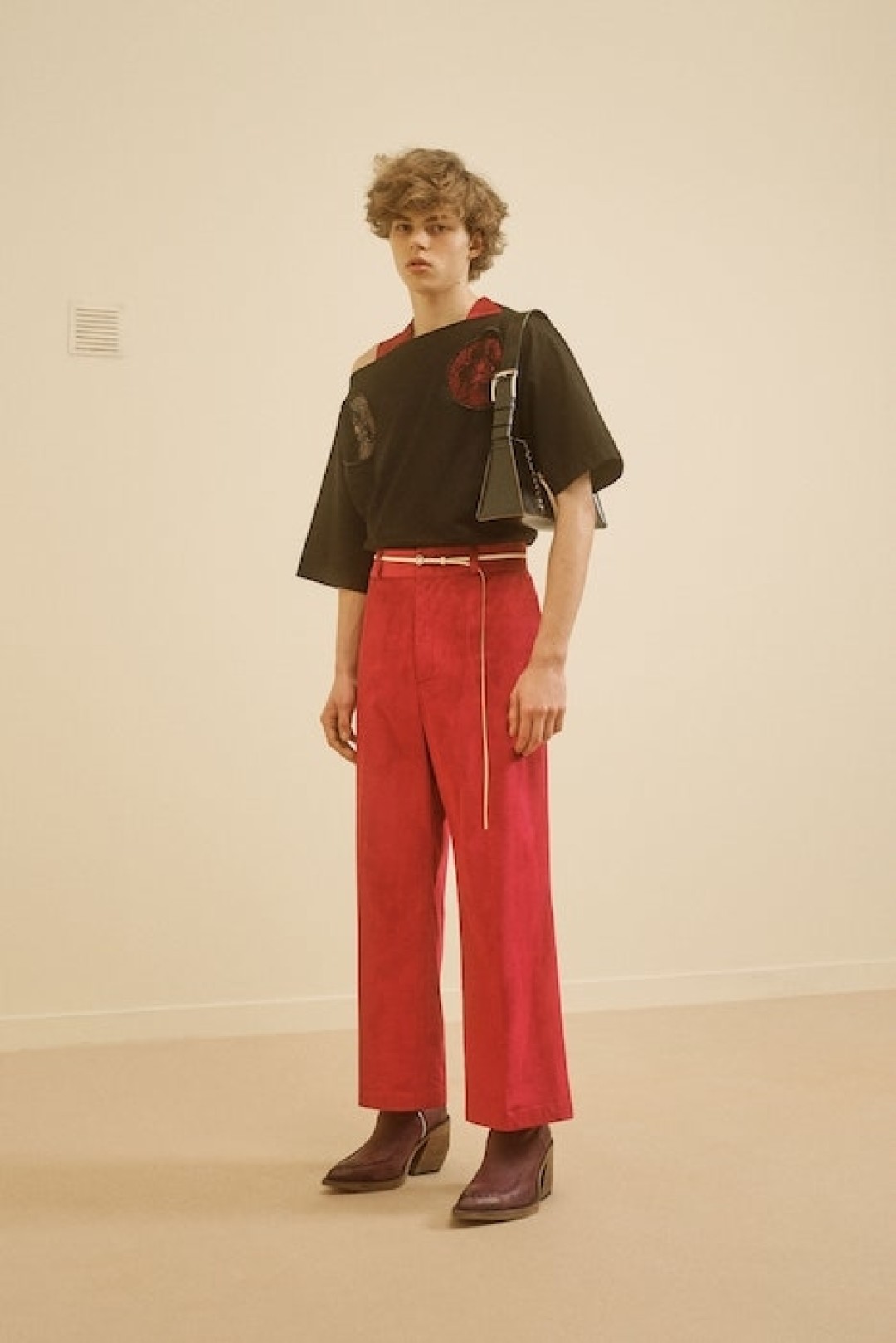 Также в коллекцию вошли комбинезоны, напоминающие униформу, костюмы с широкими брюками, куртки, вельветовые брюки, свитеры и жилетки из атласа. Всего восемнадцать функциональных образов, которые совершенно очевидно подойдут не только мужчинам.