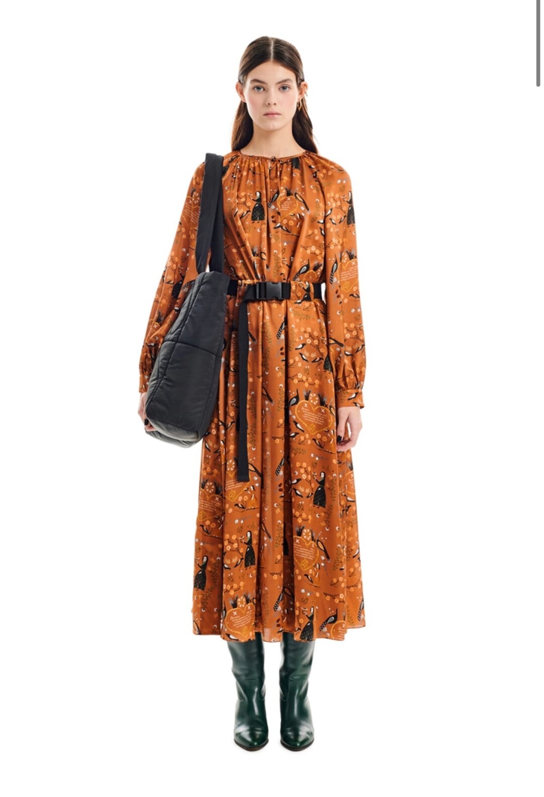 Шелковое платье из октябрьской капсулы с принтом, рассказывающим новую сказку о царевне и волшебных птицах – верный способ приманить в наступающем году чудеса. Платья от AKHMADULLINA – это старинные русские сказки и богатство тканей, создающих образ современной царевны, управляющей праздничным пиром. Рукава-фонарики, длинные пышные юбки, анималистичные мотивы вышивки – все это родом из детских сказок и той поры, когда наступление чуда – нечто очевидное и неизбежное. Пушистые друзья сопровождают свою принцессу на новогодний бал, и вот ты уже Белоснежка, которая спешит на встречу со своим единственным принцем. Или семью гномами...
