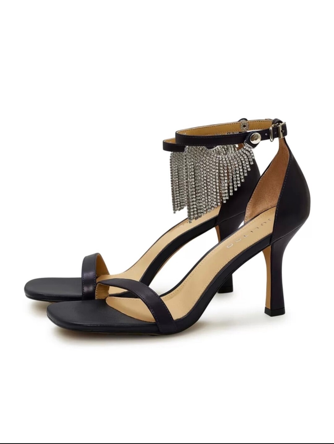 Из аксессуаров здесь подойдут белоснежные туфли со стразами, либо черные блестящие босоножки. Они закончат образ, а блеск камней напомнит о каплях замерзшей воды.