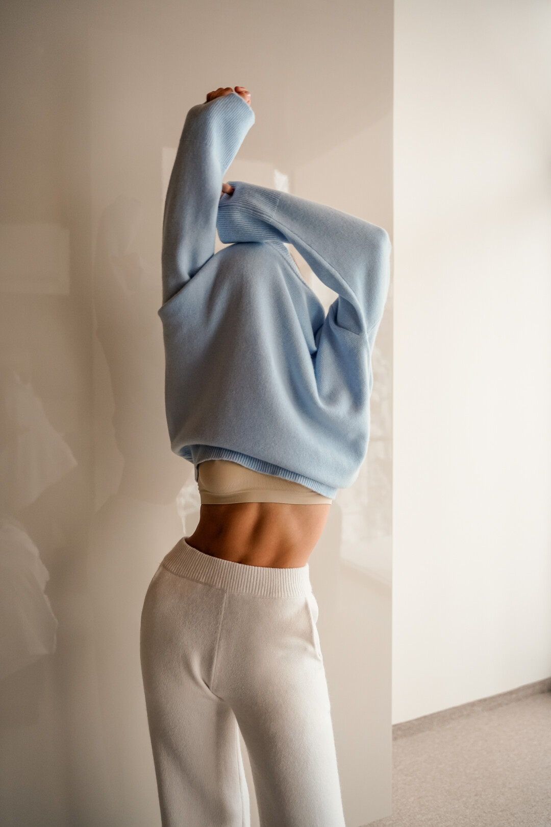 Коллекция создана из шерсти, вискозы, монгольского кашемира и смесовых материалов. В цветовой палитре оттенки, вдохновленные весенним пробуждением природы: белый, молочный, бежевый, розовый, голубой, бордовый, коричневый, серый и черный.