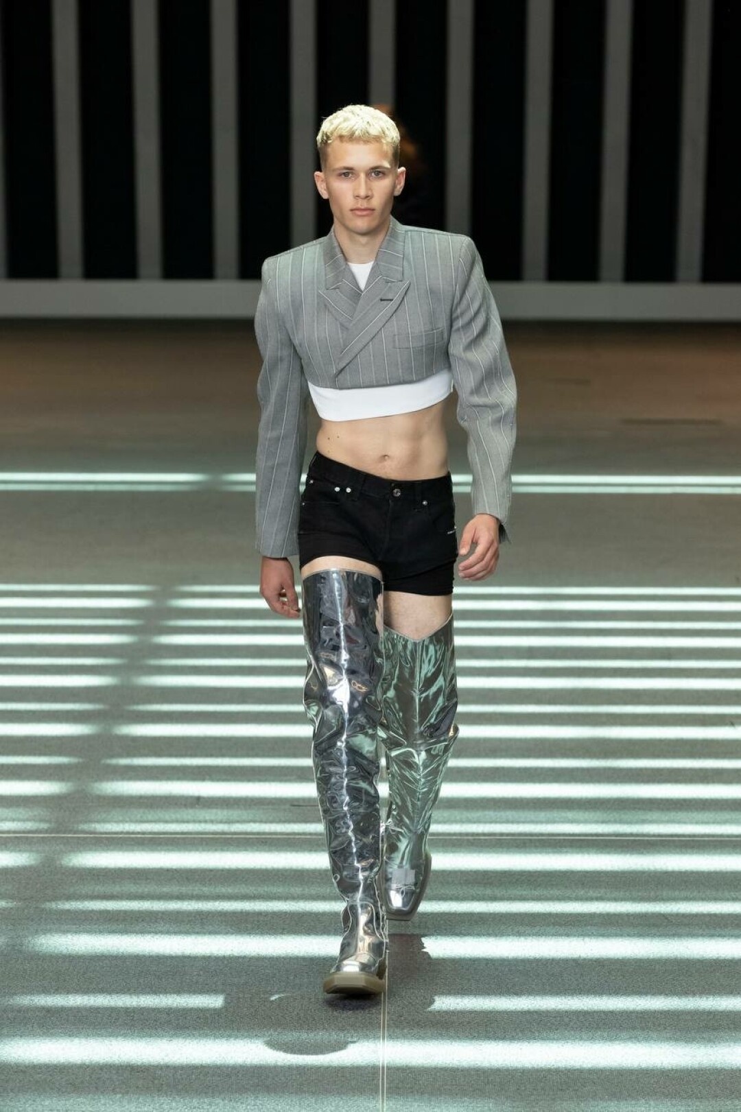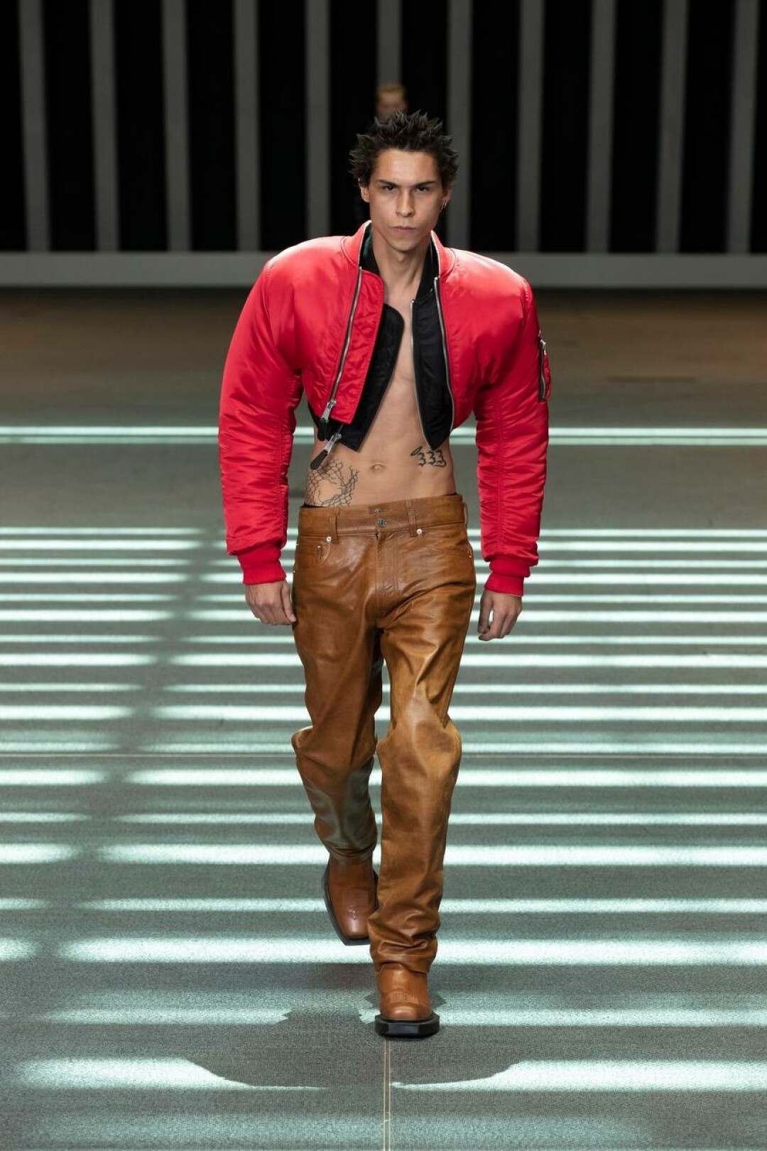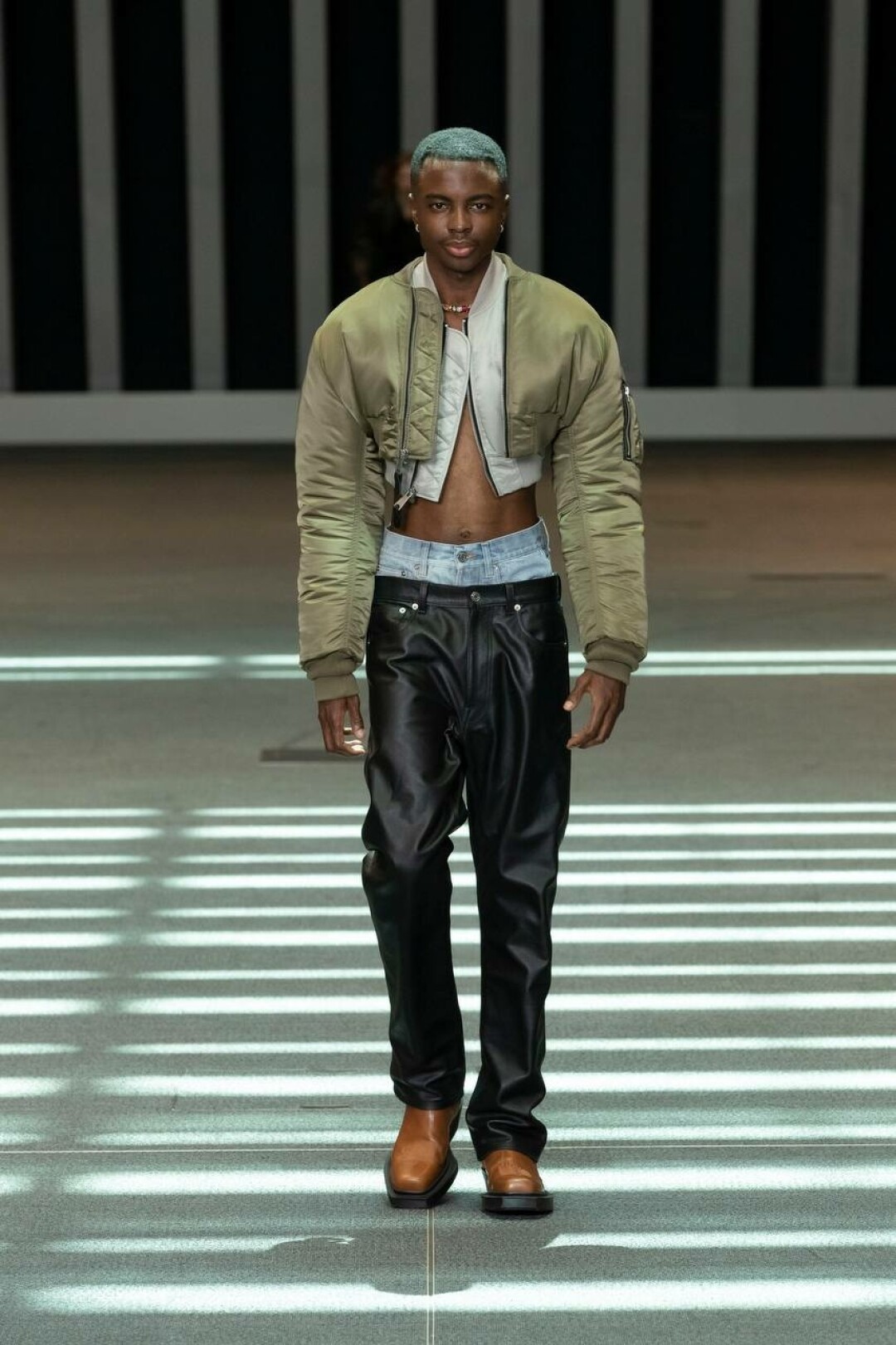 В новую коллекцию Vtmnts вошли укороченные жакеты и бомберы с объемными плечами, которые должны открывать необязательно (но желательно) идеальный пресс, микро-шорты, кожаные штаны, ботфорты, джинсы на низкой посадке с выглядывающей резинкой от белья, комбинезоны, а также тренчи. Главный стилистический прием коллекции — многослойность. Так жакеты надеты поверх топов, а под тренчем — еще один тренч.