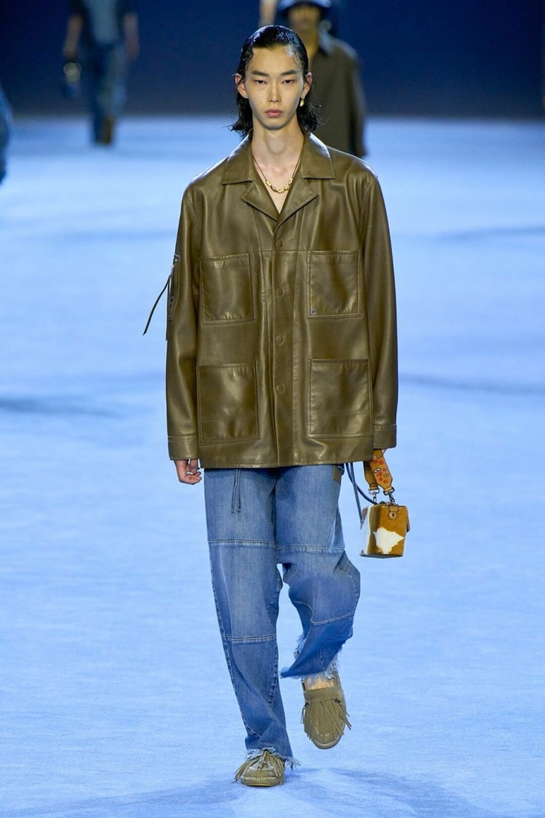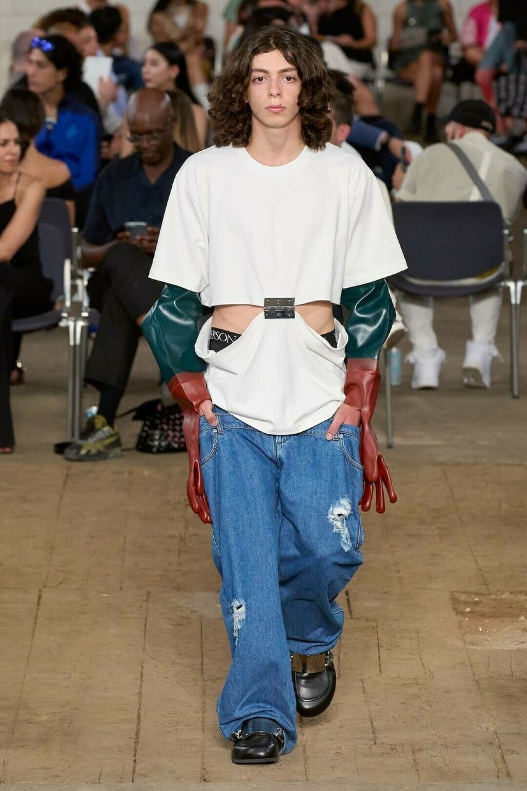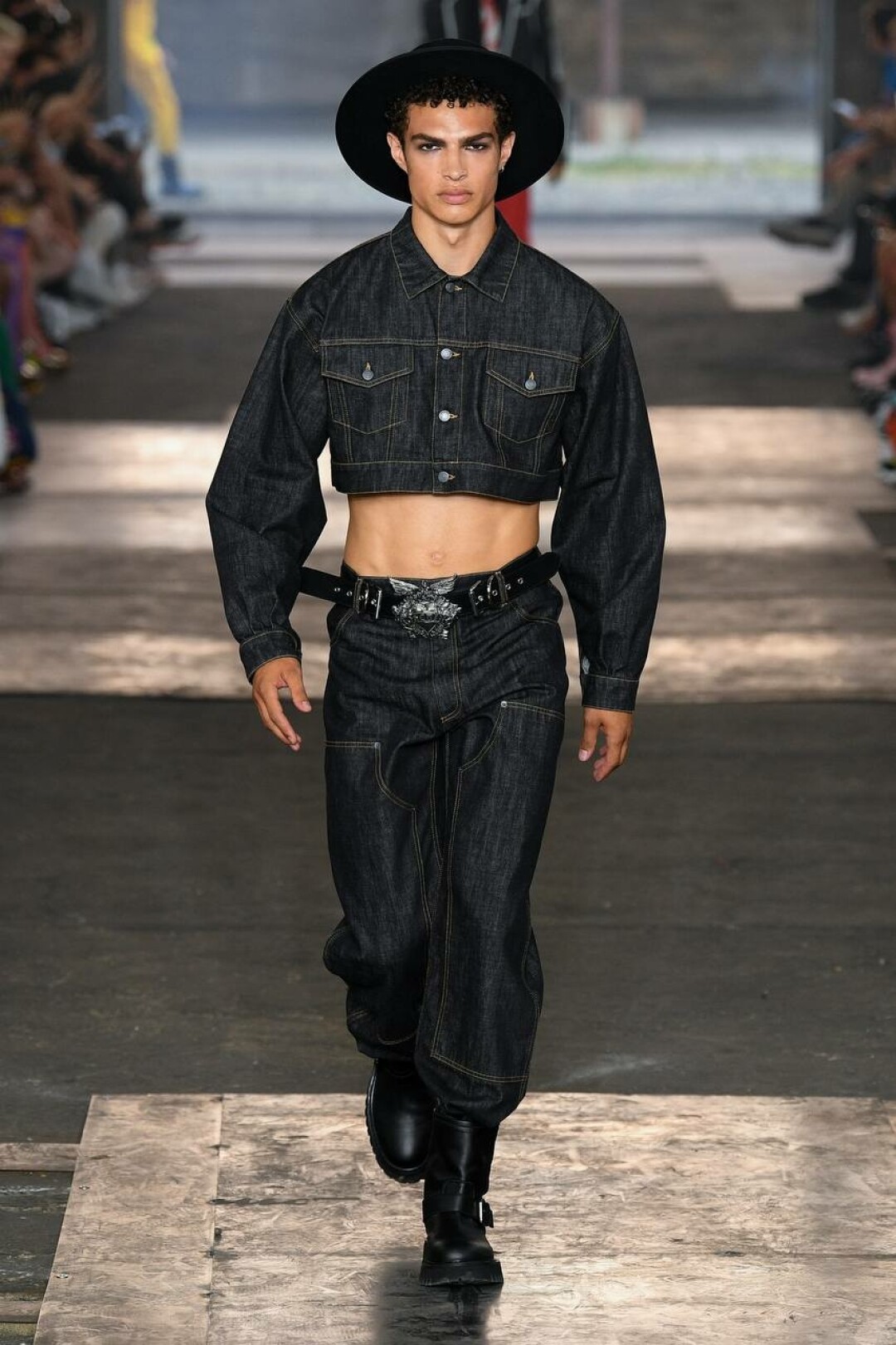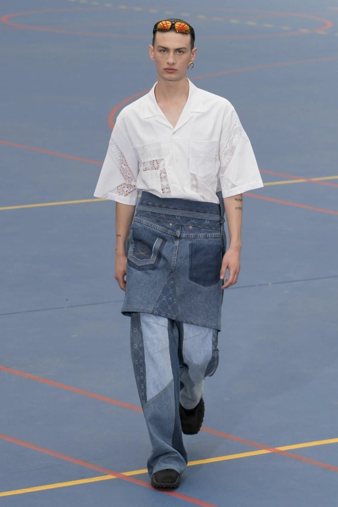 Деним заполонил подиумы и ожидаемо был назван аналитиками платформы Tagwalk одним из главных трендов Menswear SS23. В подтверждение — коллекции JW Anderson, Fendi, Givenchy, Dolce & Gabbana, Louis Vuitton, Moschino, Marine Serre. Модные дома по-своему интерпретировали деним, но в целом остались верны эстетике нулевых, одев мужчин в широкие, мешковатые джинсы преимущественно на низкой посадке. Также на подиумах мы увидели скейтерские и искусственно состаренные варианты с дырами и потертостями, джинсовые тотал-луки и вещи из денима, созданные в технике пэчворк.