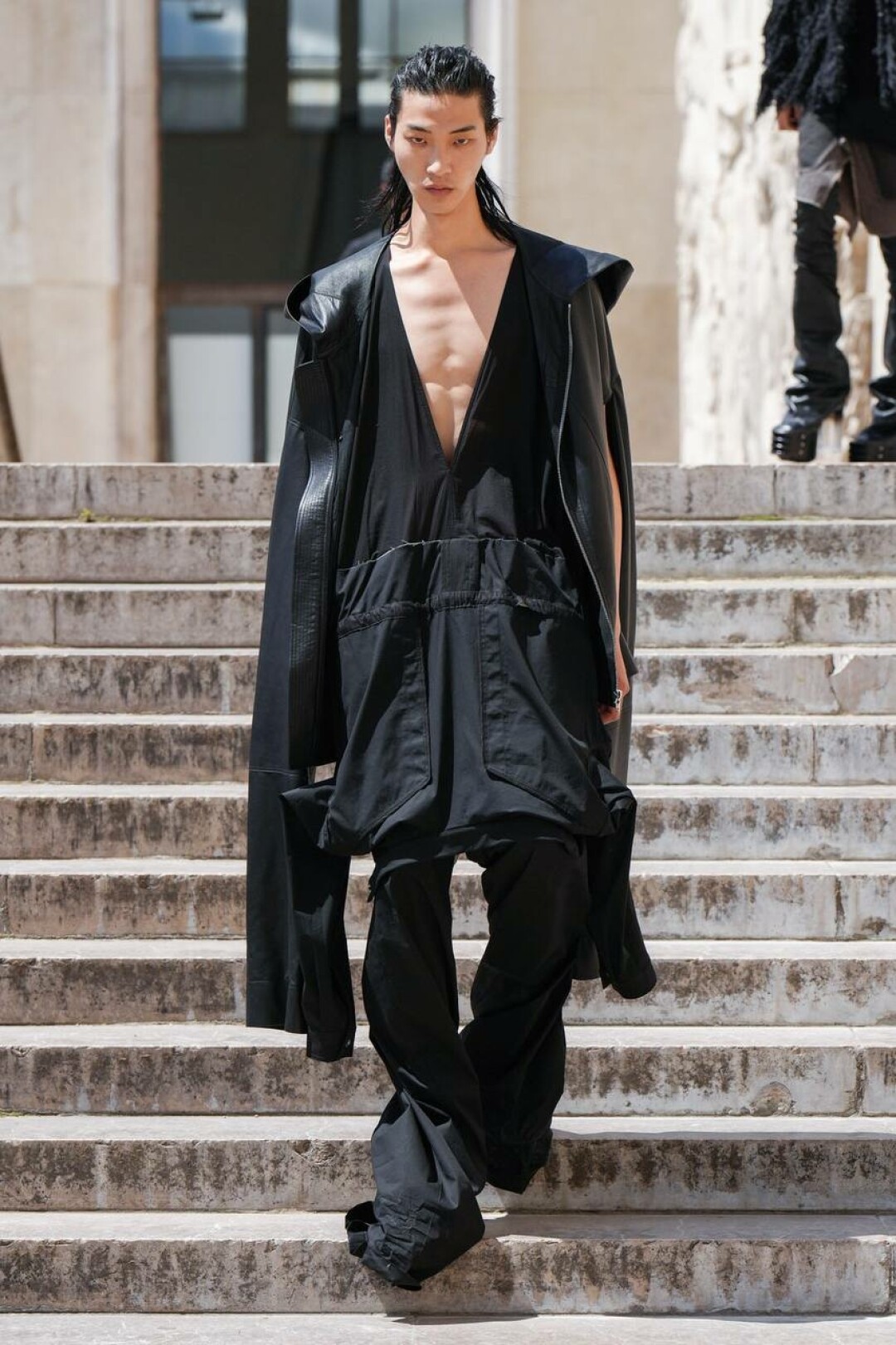 Если хочешь быть модным, обнажайся. Количество образов с оголенным торсом на мужских Неделях моды увеличилось на 504% по данным Tagwalk. Если радикальность смущает, можно начать с глубокого V-образного выреза, как у Etro, Fendi, Rick Owens, Dolce & Gabbana и Celine. Причем совсем не важно, о какой вещи речь. Такой вырез одинаково органично смотрится на блузах, рубашках, комбинезонах и кожаных куртках.