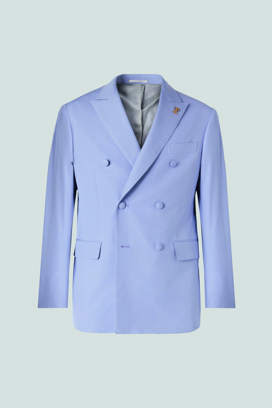 Двубортный жакет — однозначный маст-хэв. В коллекции Pal Zileri нашелся идеальный: статный, холодного голубого оттенка с пуговицами в тон. Стилизуем его с мешковатыми брюками или носим на голое тело по мотивам недель мод.