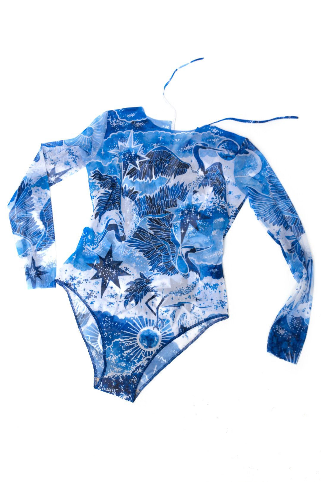 Гепарды, зебры и стрекозы: анималистичный тренд нашли у петербургского бренда умных купальников Rodasoleil. Небесно-голубой купальник-санскрин с журавлиным принтом заряжен на процветание и здоровый загар.