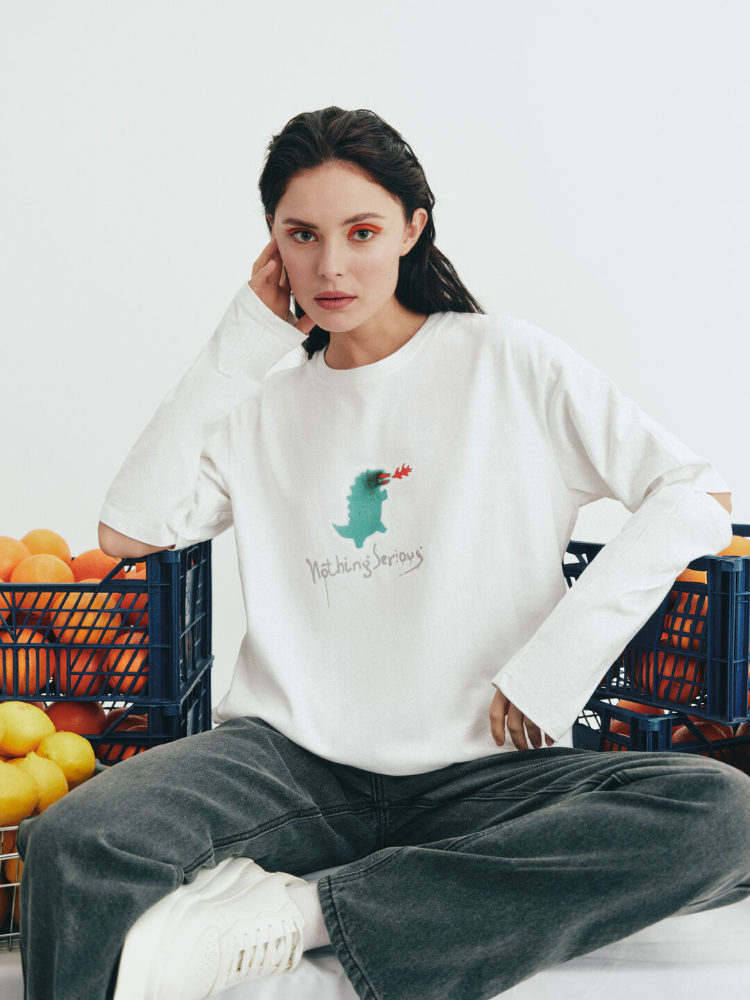 У марки URBANTIGER вышла коллекция-коллаб с принтами петербургского художника Максима Саввы, который работает под брендом Nothing serious. В линейку вошли яркие лонгсливы из хлопка с условной корюшкой (она пошла!), славными огнедышащими дракончиками (вы подружитесь!) и разрезами на локтях, а также носки средней длины с не менее креативными принтами.