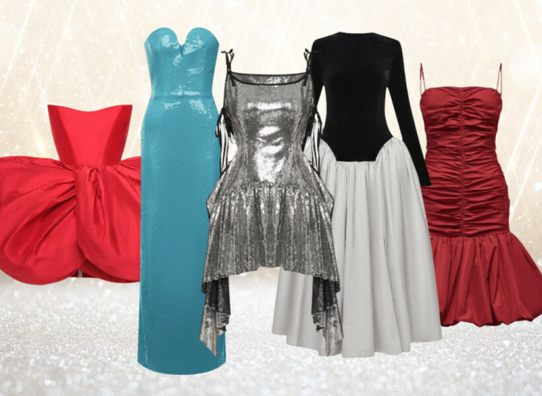 Пренебрегаем и вальсируем на голубом фэшн-огоньке в портьерном бархате, парадной тафте и хитросплетениях пайеток — при помощи самых праздничных бодиконов, макси-платьев и мажореток.