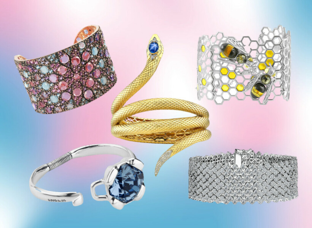 Не ограничиваем себя рамками минимализма и отправляемся в продолжительный праздничный трип в звонкой компании массивных браслетов — чем больше, тем лучше.