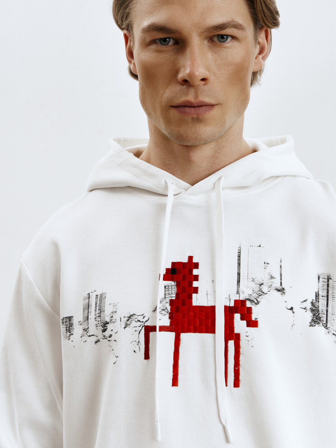 Петербургские эко-фэшн активисты Urbantiger объединились со стрит-арт художником (и мастером пиксель-арта!) Владимиром Net — в итоге поселили красного коня (референс — Абашевская народная игрушка с герба Пензы, где вырос Владимир) на белоснежном худи, вырастили пиксель-тигрика на базовом лонгсливе и объединили разрозненные майнкрафт-кирпичики на простом-простом холщовом шоппере.
