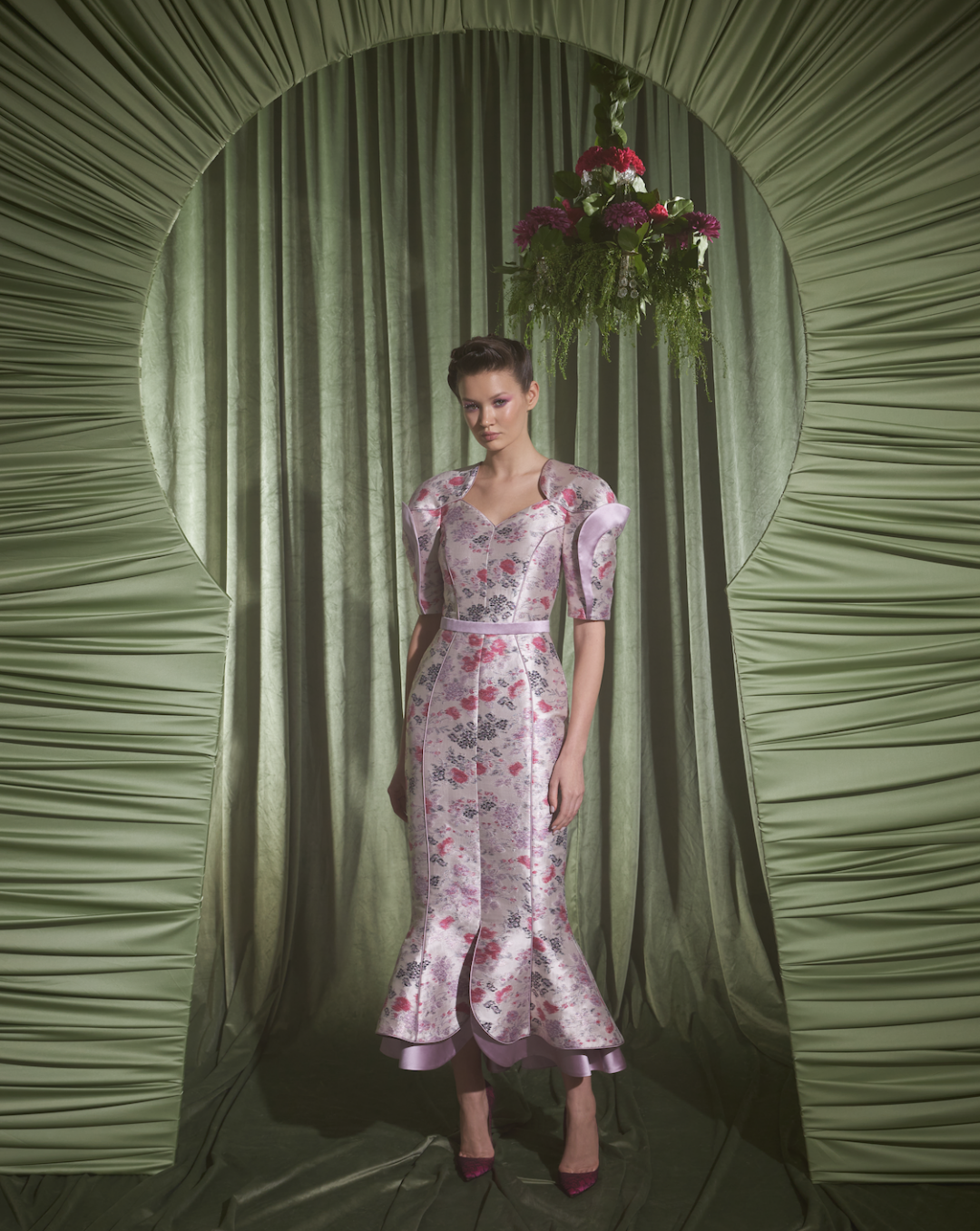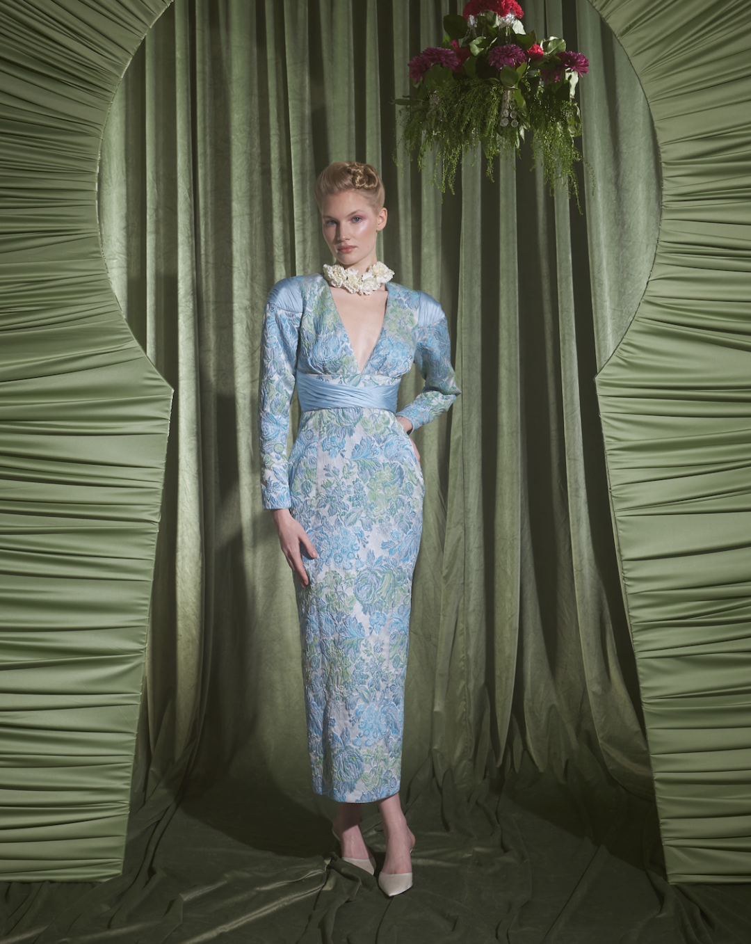 Фея демикутюра Лидия Метельская написала новую фэшн-главу в своем царстве эстетического эскапизма Meowshka: в вечерней коллекции Chateau Meowshka объединила будуаркорные силуэты с фантазийным ар-нуво вайбом, сшив фирменные платья-миди из винтажного жаккарда, а также шелка, бархата и муслина. В роли аксессуаров — банты-браслеты и кутюрные чокеры-котики на французской шелковой ленте с вышивкой, в роли талисмана коллекции (и всей фэшн-империи Meowshka) — избалованный котик Беляш (главная муза Метельской!).