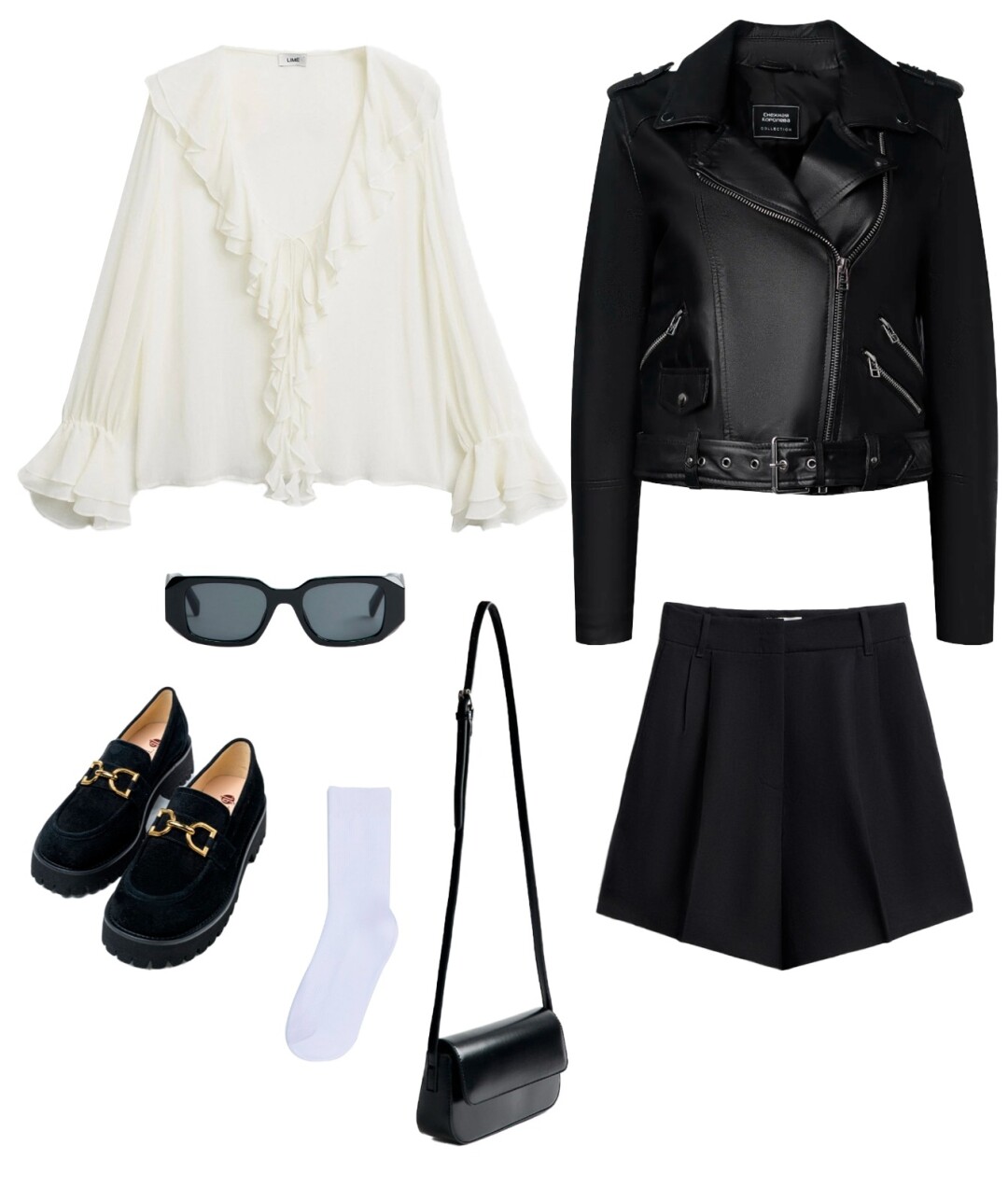 Романтичная блуза в нежной пастельной гамме эффектно контрастирует с лаконичными бермудами, создавая микс стилей. Это вариант для тех, кто следит за «быстрыми» трендами, поскольку бермуды сейчас – мега-актуальная вещь как для мужчин, так и для женщин, буквально хит сезона. В сочетании с романтичной блузой образ получается очень стритовым!