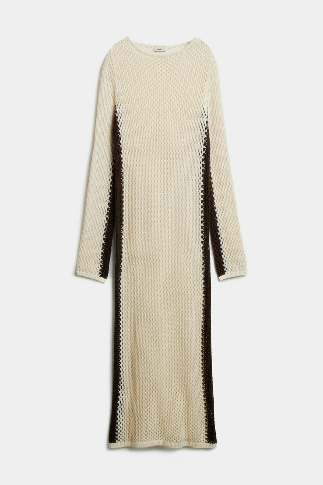 Платья-сетки вышли в город! Теперь не только поверх купальника на пляже — надеваем их на прогулку по городу в сочетании с микро-шортами и топом-бандо. Макси-длина и длинные рукава этого платья LIME добавляют образу сдержанности. Контраст из черной линии, которая будто обводит силуэт по контуру, стройнит.