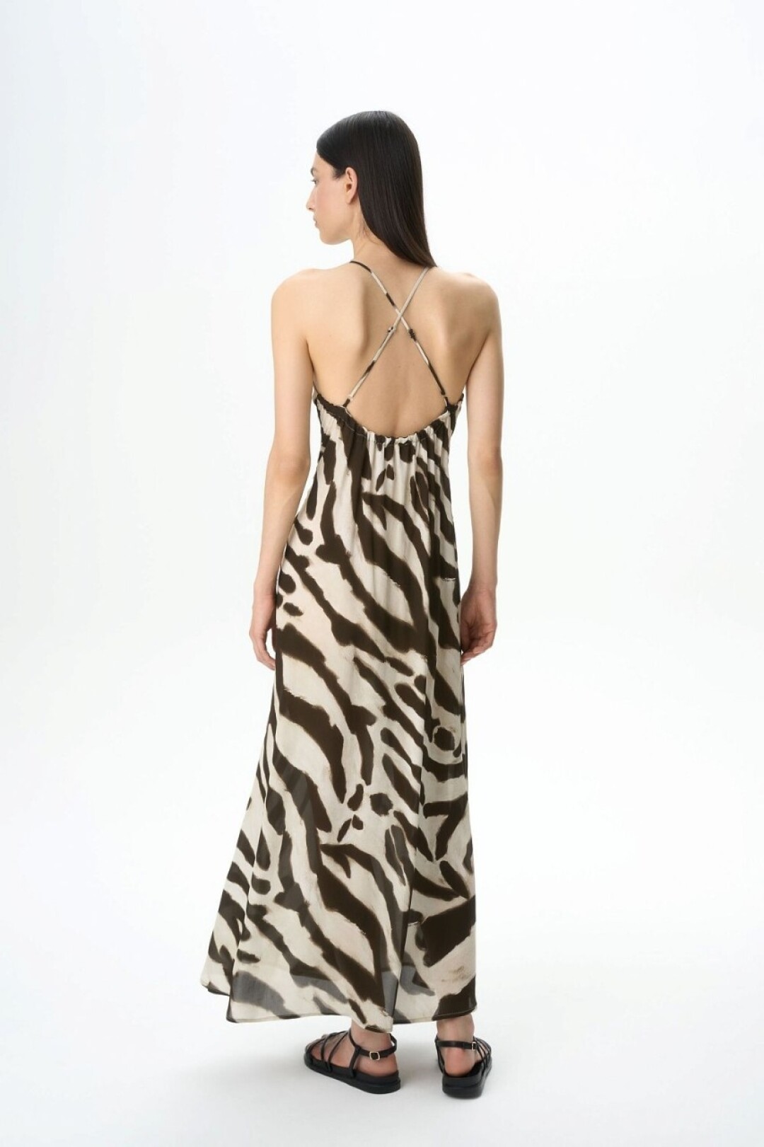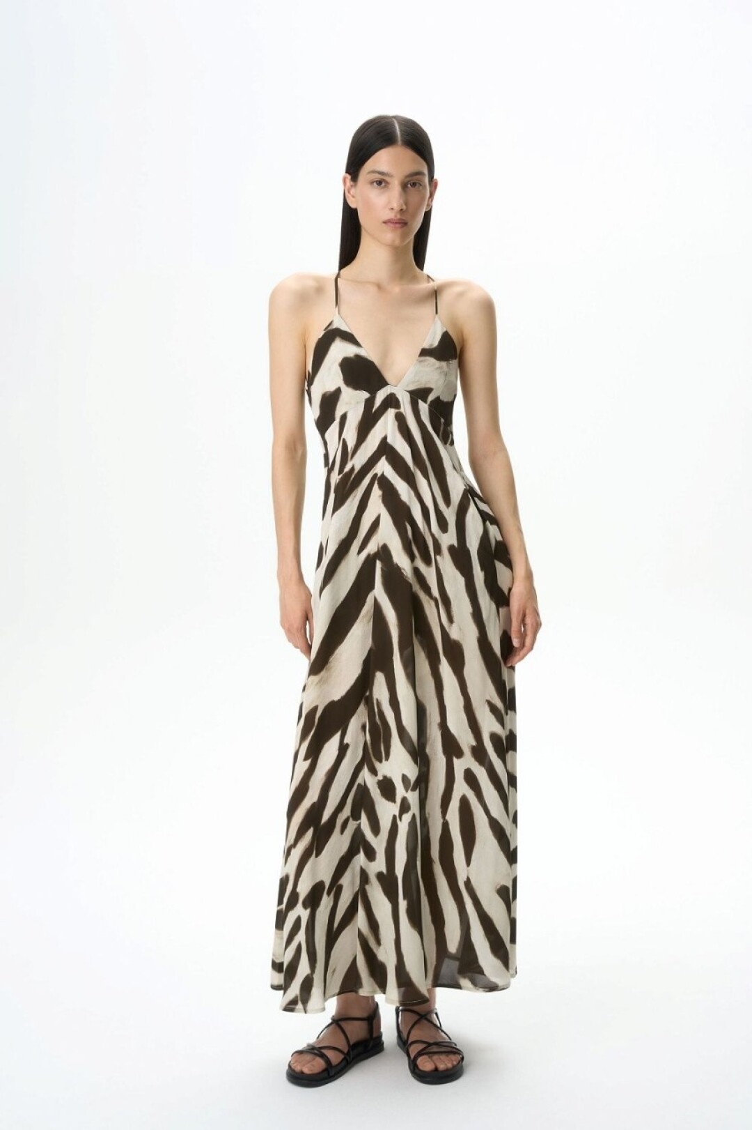 Анималистичный принт в версии 2024 года. Цветовое решение российского бренда Brusnika выглядит очень благородно: этот сарафан привлекает внимание своей графичностью, а 100% вискоза отлично драпируется по фигуре, добавляя +100 к плавности движений.