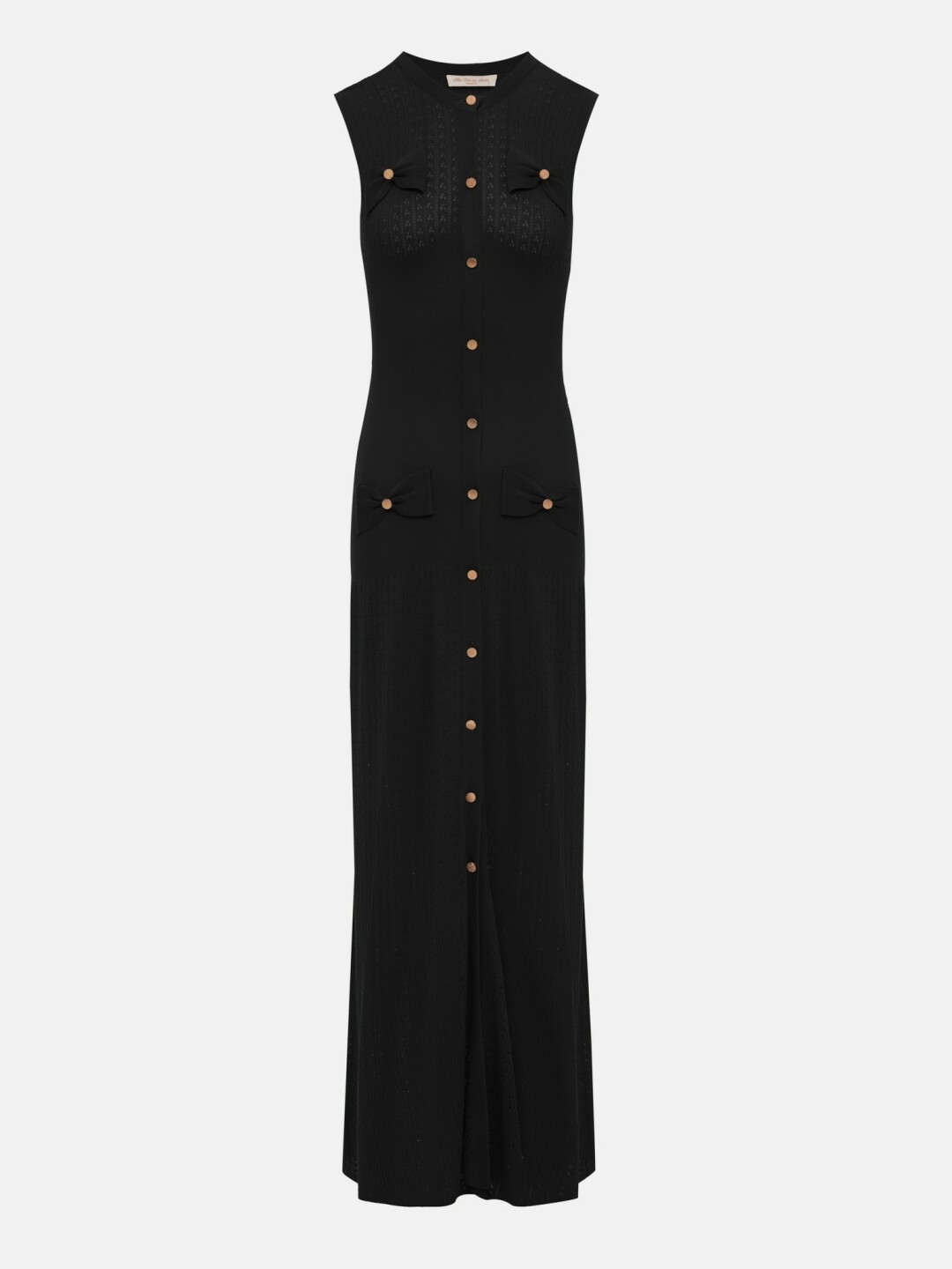 Вязаное платье макси от LICHI приглянется тем, кто отгибает в сторону мизинец, когда пьет чай. Или, по крайней мере, хочет производить такое впечатление. Аристократичность, тренд на прозрачность «see true» и комфортный трикотаж в одном флаконе — топовое сочетание.