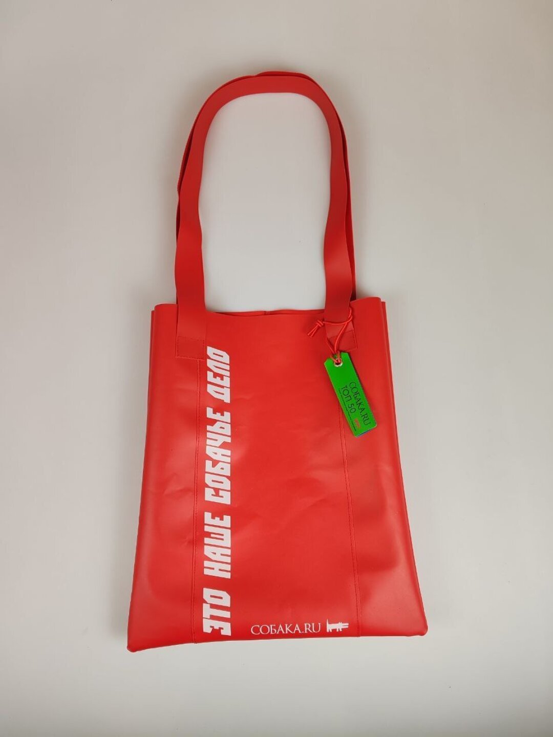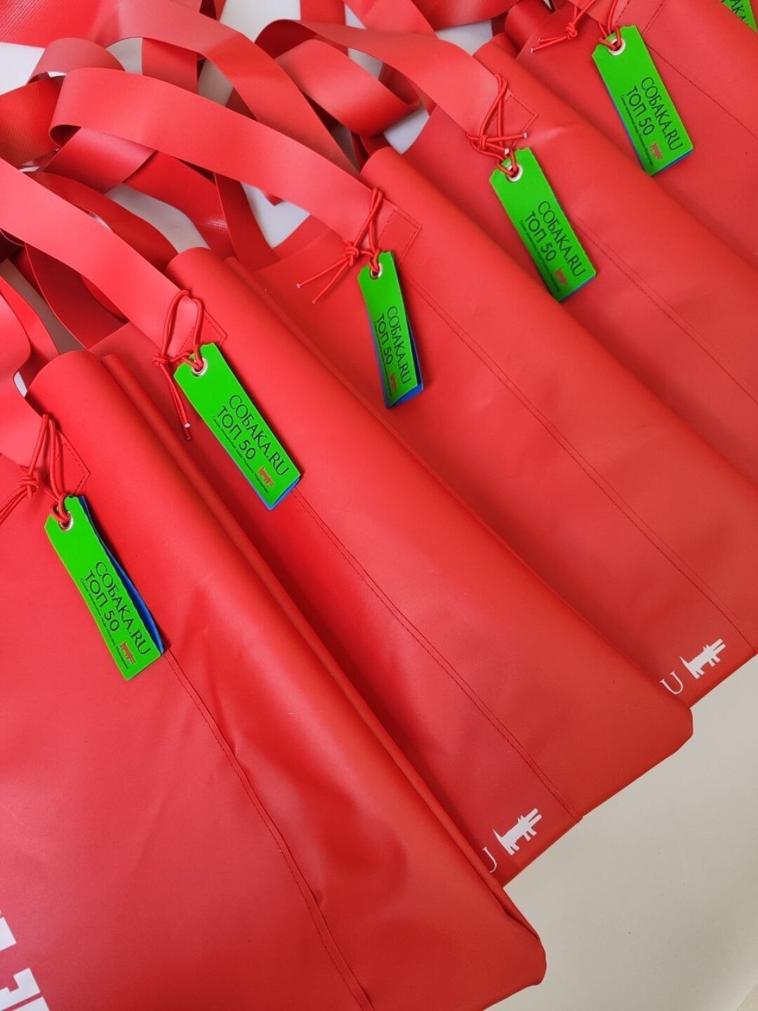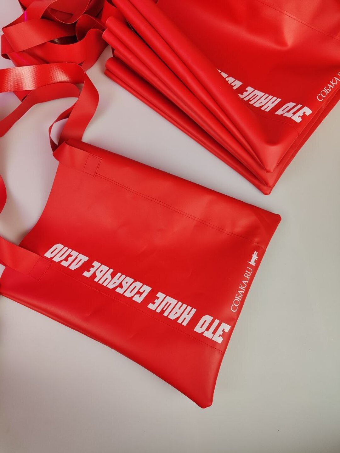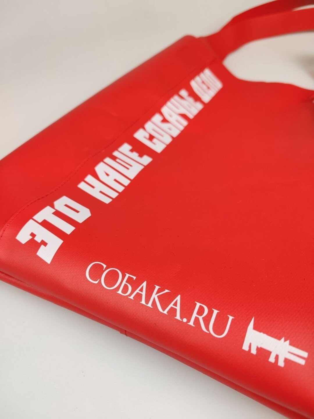 Созданием эко-сумок занимается компания «Манифест», специализирующаяся на изготовлении аксессуаров из переработанных вещей: парашюты, пожарные шланги, сигнальные жилеты и не только. А лого и надпись на наш шоппер наносили уф-печатью, чтобы «наше собачье дело» никогда не стерлось.