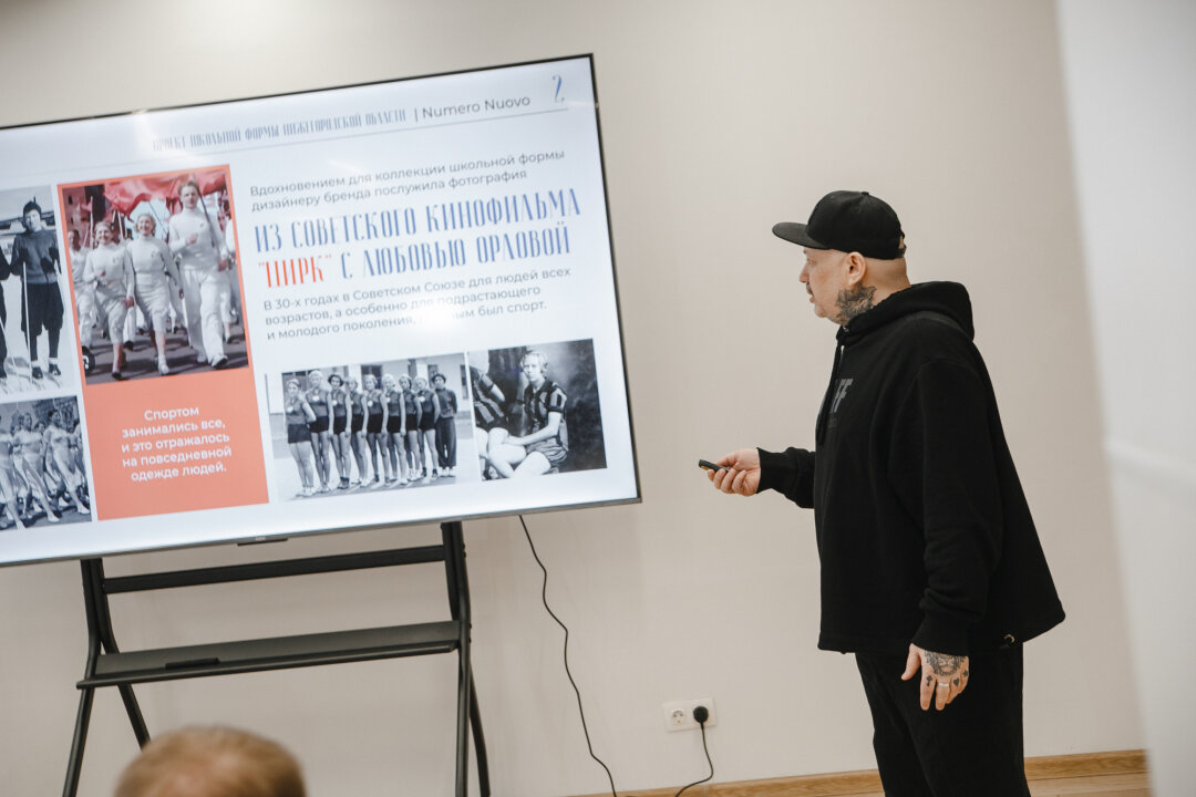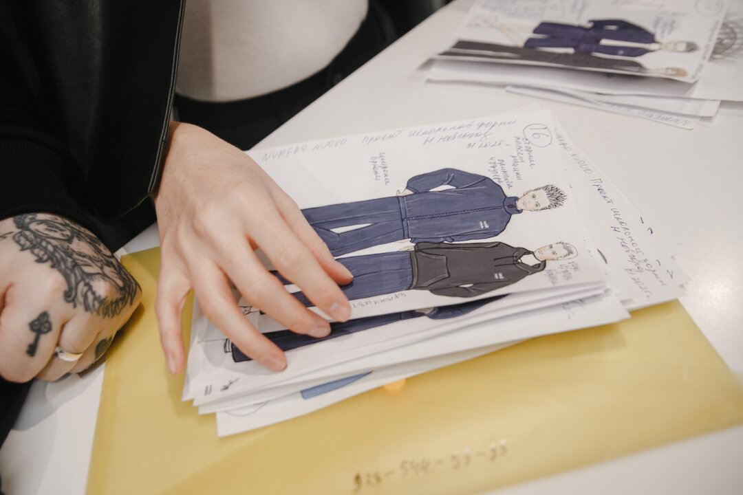 Эскизы коллекции для младшей (1-4 классы) и старшей (5-11 классы) школ показали три дизайнера: Андрей Рыбинский (Numero Nuovo), Евгения Комиссарова (JS Sense) и Елена Жигалова (Bantini Mini).