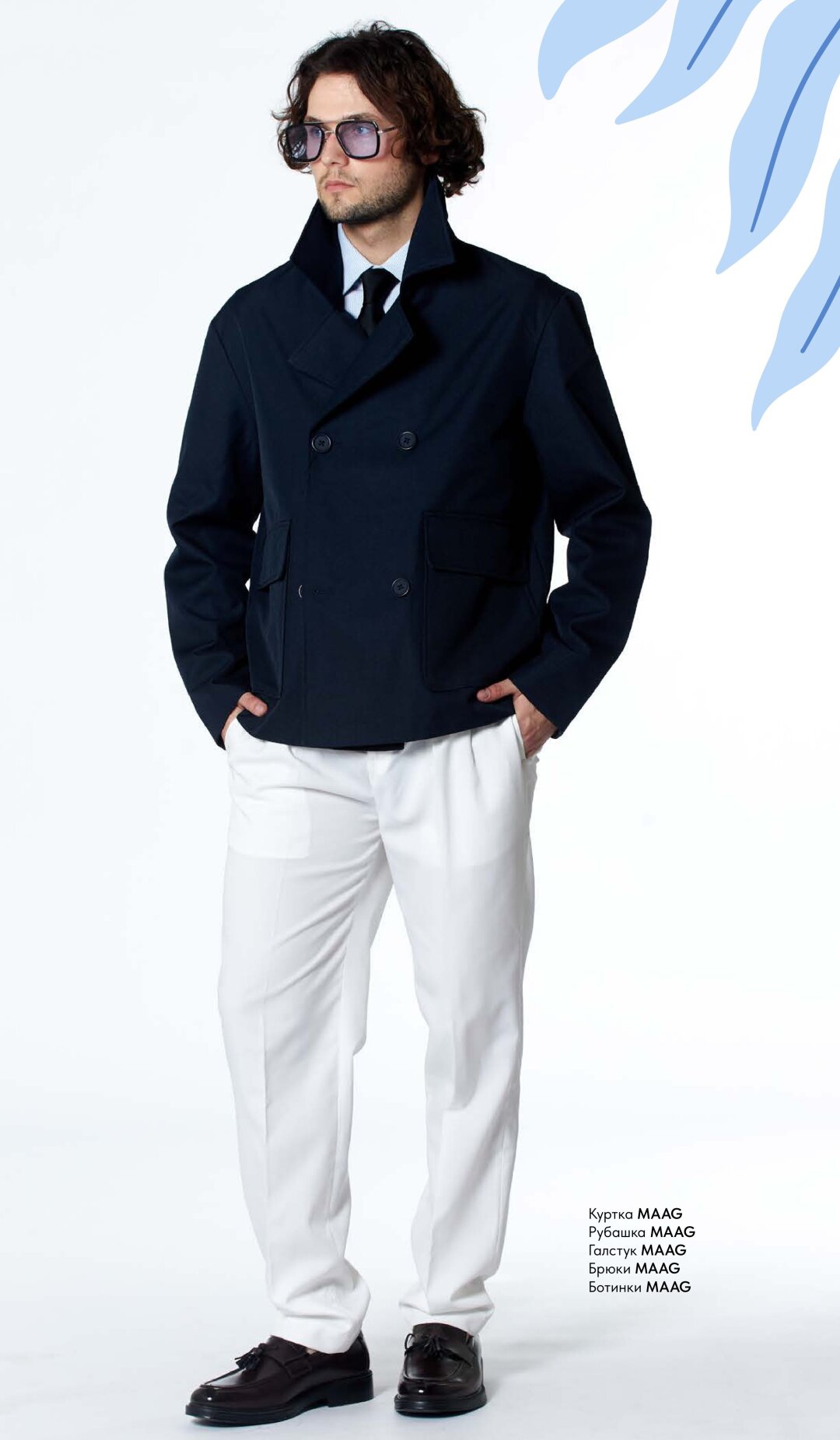 Прохладный вечер в большом городе — повод с утра продумать образ до мелочей. Редкому мужчине белый цвет не добавляет элегантности! Этот оттенок нечасто выбирают, но он так освежает, а в сочетании с кашемировой курткой и контрастными деталями играет на стиль, создавая деловой, но одновременно и расслабленный образ.