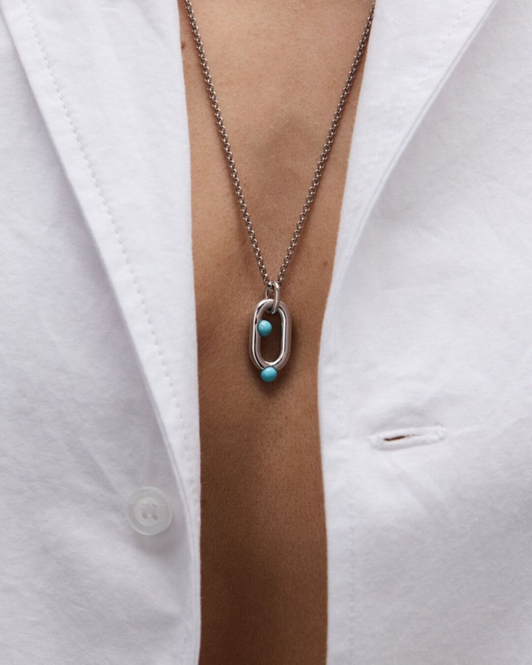 из будущего привезу, вставлю ее в колечко»). В коллекцию вошли три подвески-цитаты: вместо слез использовали капельки из хрусталя, бирюзы и жемчуга, вставленные в серебрянные колечки. Подвески можно носить в качестве кулона на длинной цепи, украсить ей серьгу-хуп или браслет.