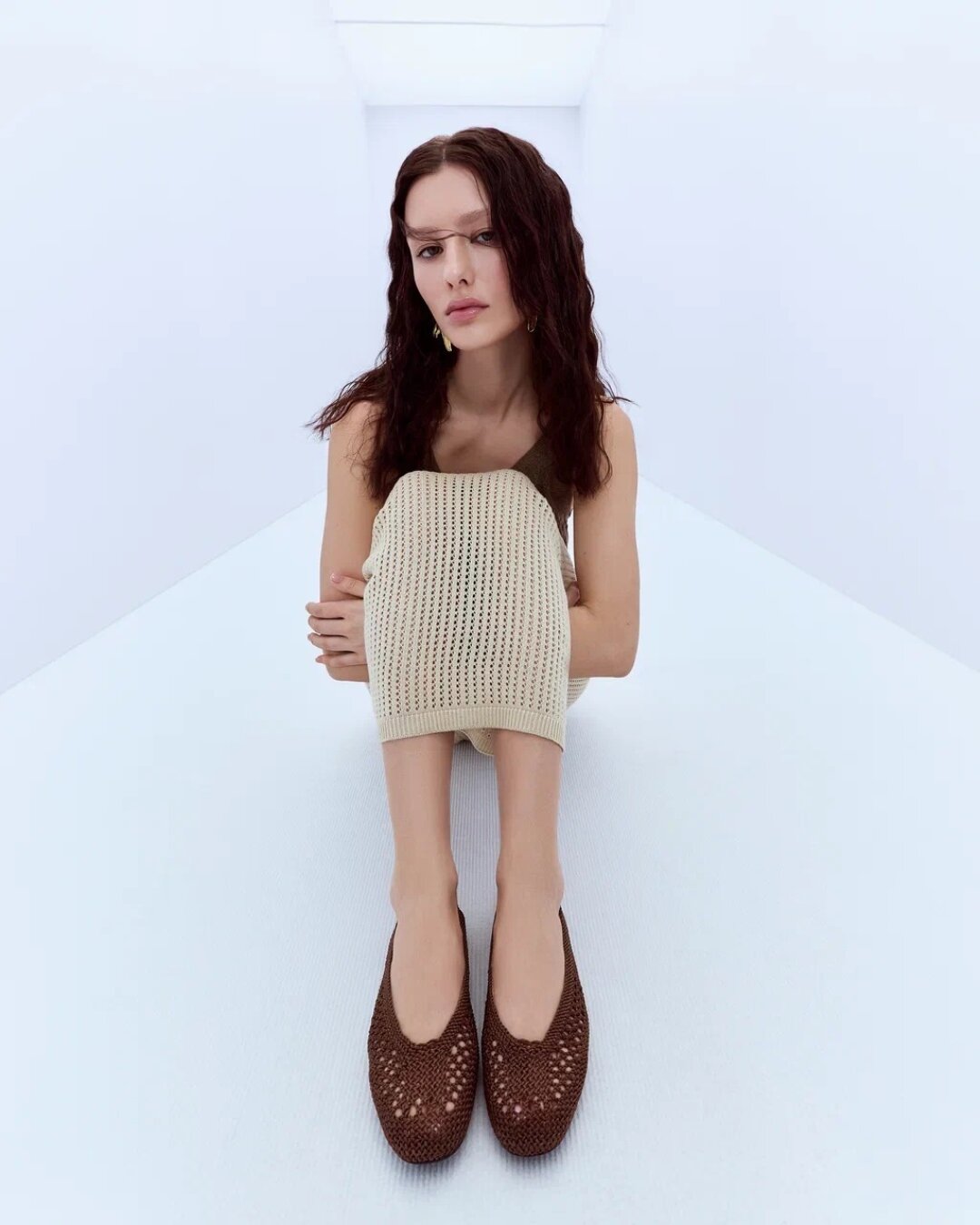 На мудборде для весенне-летнего кампейна итальянских обувщиков Anna Rachele — кадры из нашумевшего корпоративного триллера «Разделение». Стерильно-белые стены стали фоном для новой коллекции бренда, которая объединила главные тренды последних лет — от гламура до коттеджкора и grandpacore. Отсюда — ретро-футуристичные металлик-босоножки, вязаные балетки-макраме, плетеные сандалии на массивной подошве, туфли на ультрамодной танкетке и псевдодедулины тапки.