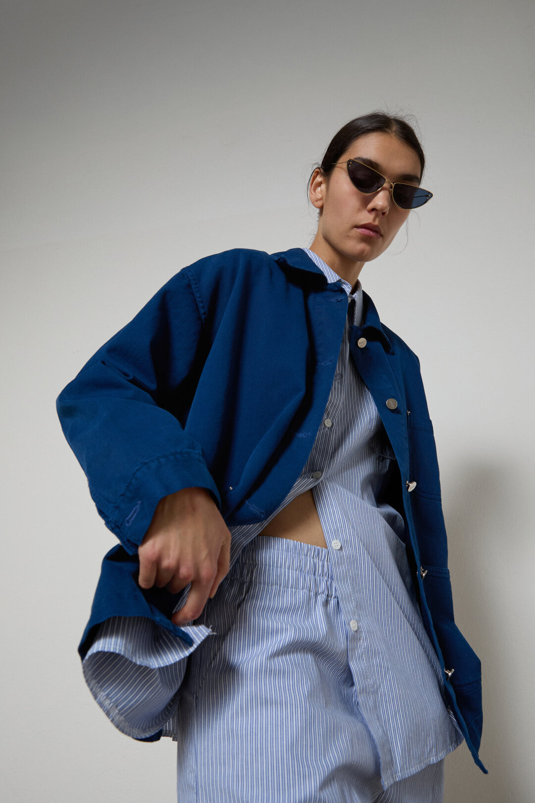 Оверсайз уступает место архитектуре: в центре внимания – подчеркнутая талия, мягкая заниженная посадка и выразительная линия плеч, отсылающая к уверенным 80-м. Не «в обтяг», а баланс и силуэт: даже свободные вещи обретают четкие формы, помогая собрать образ и добавить ему структурной уверенности.