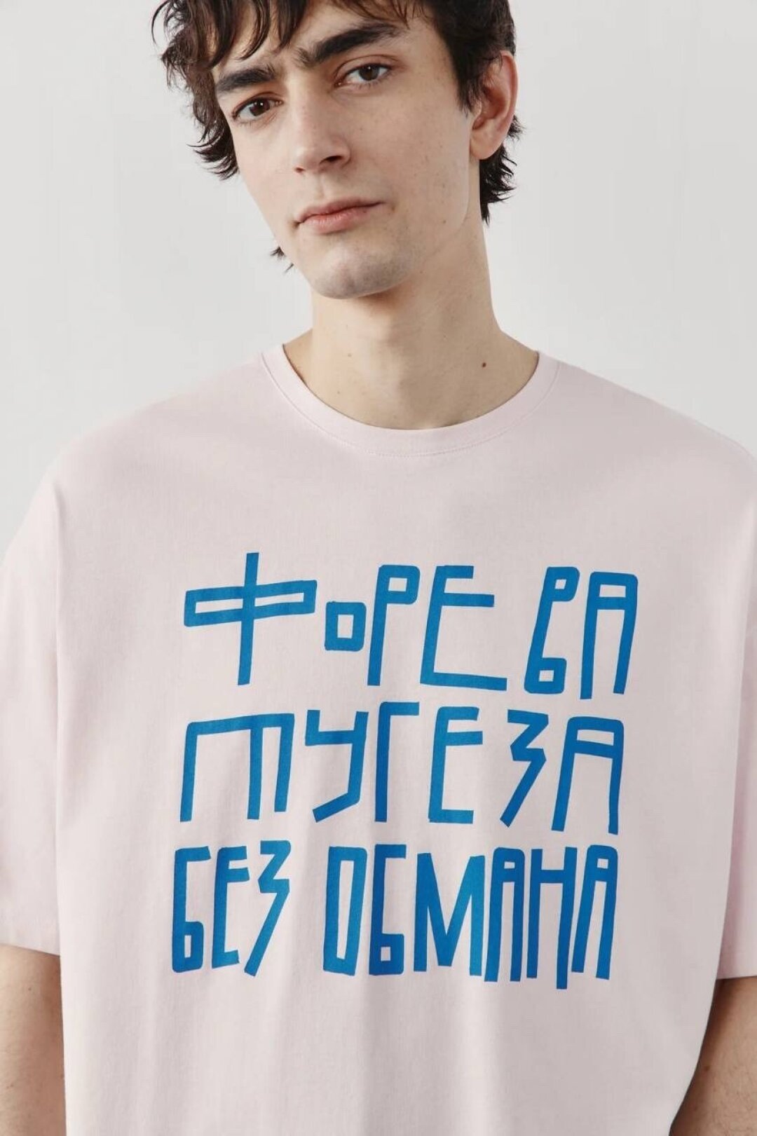 Кажется, с 2022 года мы обсуждали взаимодействие и пришли к конкретным решениям лишь год назад. Интеграция с одеждой и брендами для меня не нова. За последние годы довольно много подобного происходило: и вышивка на рубашках с «Моим бывшим», и районы Нижнего с печатной мастерской «Мерчтура», и разные музеи делали вещи, «Мира центр» в Суздале, например. Правда, до этого были довольно точечные партии, измеряющиеся в сотнях, а не такой многотысячный выход, как с Befree, когда надписи появились в магазинах по всей стране. Чувства в целом органичные, потому что как уличный художник я работаю с публичным пространством и рассматриваю надписи на одежде как один из видов присутствия в этом самом пространстве. Это такой движущийся стрит-арт.