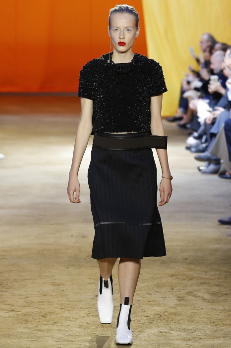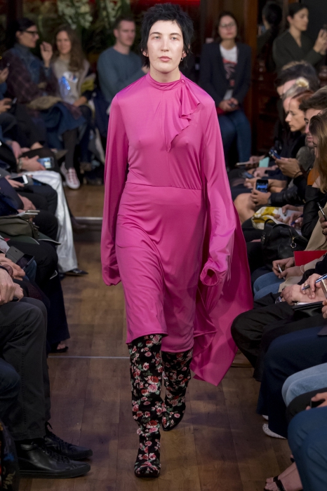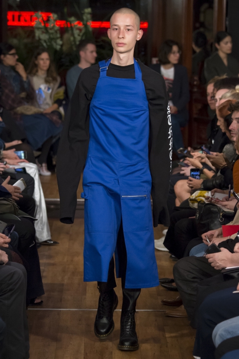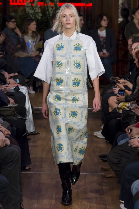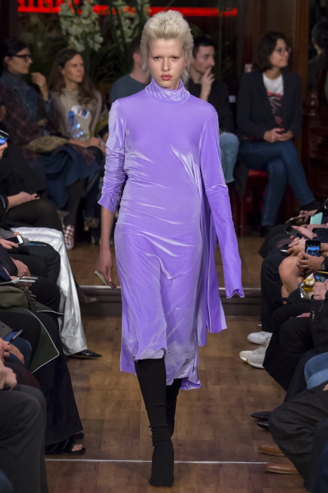 Как и в прошлом сезоне, бренд Vetements эксплуатирует стиль восточного блока на закате империи — в этом большая заслуга Лотты Волковой-Адам, стилиста из Владивостока, которая не только стилизует шоу Vetements, но и организовывает кастинги (а в этот раз еще и закрывает показ). Мало того, что в коллекции сразу же считываются русские коды (кожаные плащи из девяностых, «морщинистые» сапоги, люрексовые платья и сарафаны, сделанные будто из советской клеенки), так еще и моделей для шоу предоставило московское агентство Lumpen  c парнями и девушками нестандартной красоты. А открыл показ и вовсе дизайнер Гоша Рубчинский — в футболке DHL, кожаных штанах и армейских ботинках. Кстати, на следующий день после шоу объявили, что дизайнер  Vetements грузин Демна Гвасалия станет новым креативным директором Balenciaga.