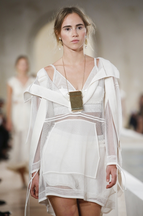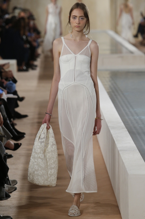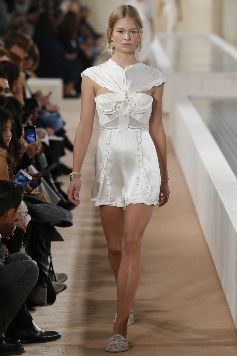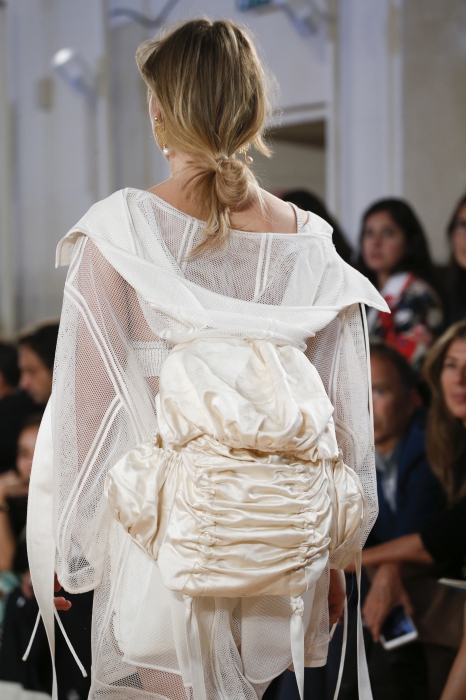 Шоу Balenciaga достойно внимания хотя бы потому, что это последняя коллекция Александра Вэнга для бренда. На бэкстейдже американский дизайнер рассказал журналистам, что его коллекция — словно последний день в школе. Оно и видно: сатиновые платья, прозрачные топы, жакеты с оборками — и все белоснежное или оттенка слоновой кости.