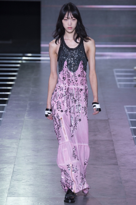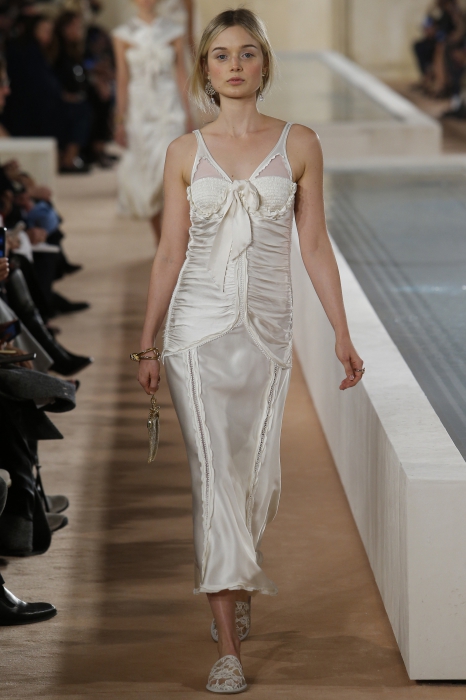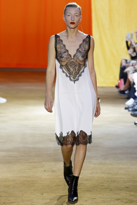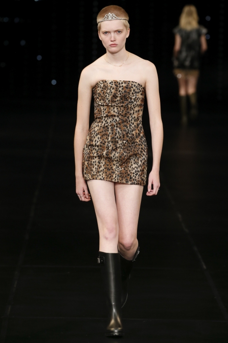 Прозрачные, кожаные, с леопардовыми принтом, из кружева, шелковые или усыпанные глиттером — для новой коллекции Saint Laurent Эди Слиман подготовил полсотни платьев и топов в бельевом стиле. Дизайнер традиционно сочетает их с золотыми бомберами, жакетами мужского кроя, рваными джинсовыми куртками и шубами. Кстати, моделей шоу Saint Laurent обсуждали не меньше, чем одежду. Во-первых, на подиум вернулась Агнесс Дейн. Во-вторых, продолжается «феномен Джиджи Хадид», когда вместо профессиональный моделей модные дома приглашают на шоу инстаграм-звезд. В этот раз Эди Слиман организовал модельный дебют Стаз Линдес. И в-третьих, показ закрыла модель из Петербурга Вика (Odette) Pavlova.