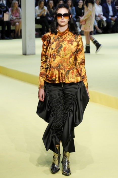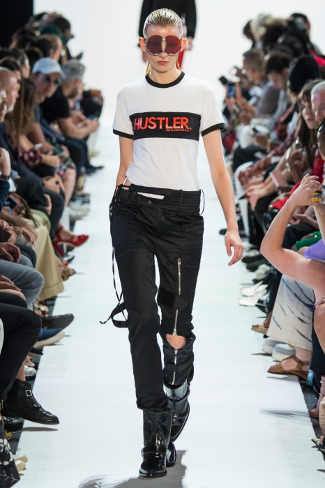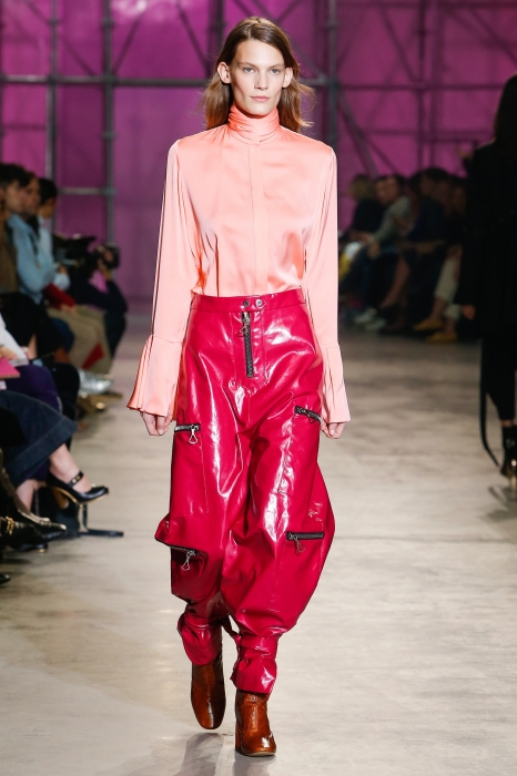 Если сравнивать аутфиты британских рейвов девяностых, например, с отечественными, то сходств у них будет немного, зато в этом списке будут универсальные широкие карго с карманами и ремешками. Именно они стали центром трендбука будущего весенне-летнего сезона. У Ellery — из лакированной кожи, у Preen by Tomas Bregazzi — полностью в блестках, у Hood by Air — с вырезами и на молниях, у Marques’Almeida — с остромодными оборками, а Dsquared2 приблизились к оригиналу ближе всего, выпустив штаны-трубы из денима.