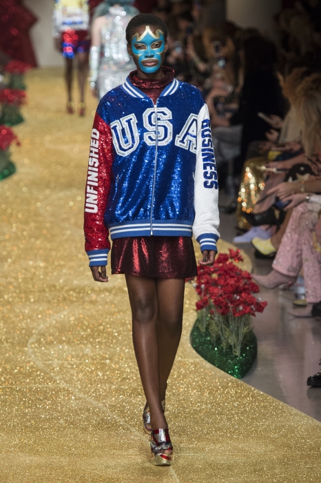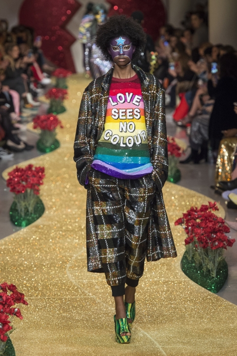 Вещи из новой коллекции Ашиша Гупты украшали цвета американского флага, радуга, надписи «Never give up», «Keep the faith», «More glitter — less twitter», а макияж моделей повторял маски мексиканских рестлеров. Так британский дизайнер индийского происхождения намекает нам о политике Дональда Трампа: «Наступило время, когда выход только один: мы должны объединяться, потому что любовь и единство должны победить тот хаос, который происходит в Америке».