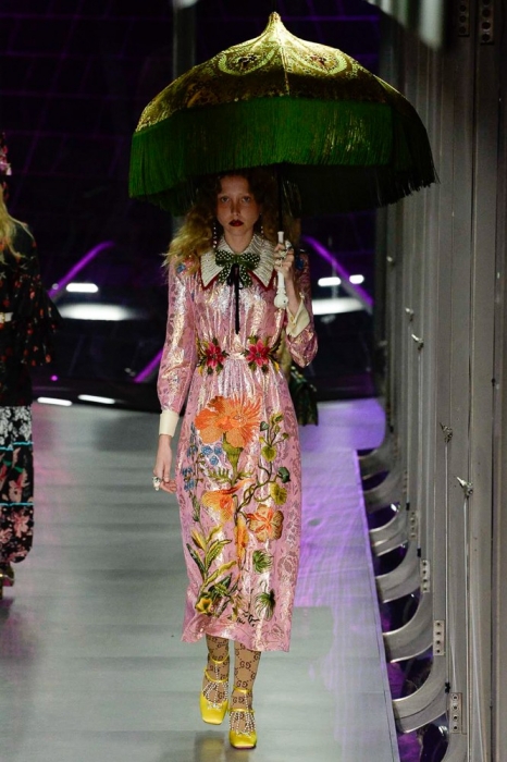 В Милане стартовала неделя моды, и открыл ее показ Gucci. Шоу прошло в пространств Gucci Hub, модели ходили по застекленному подиуму, как по лабиринту. Как всегда, креативному директору Алессандро Микеле удается замешивать десятки культурных направлений.