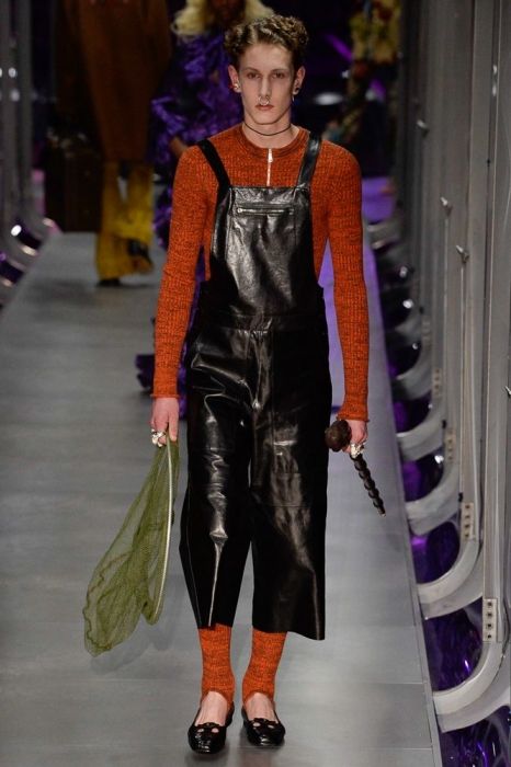 В одной коллекции мы увидели викторианские принты, байкерские куртки, ковбоские ремни, диско-силуэты из 1980-х, люрексовые колготки из 2000-х, шапки с помпонами, кожаные комбинезоны, легинсы и японские зонты.