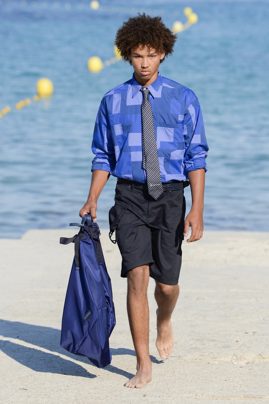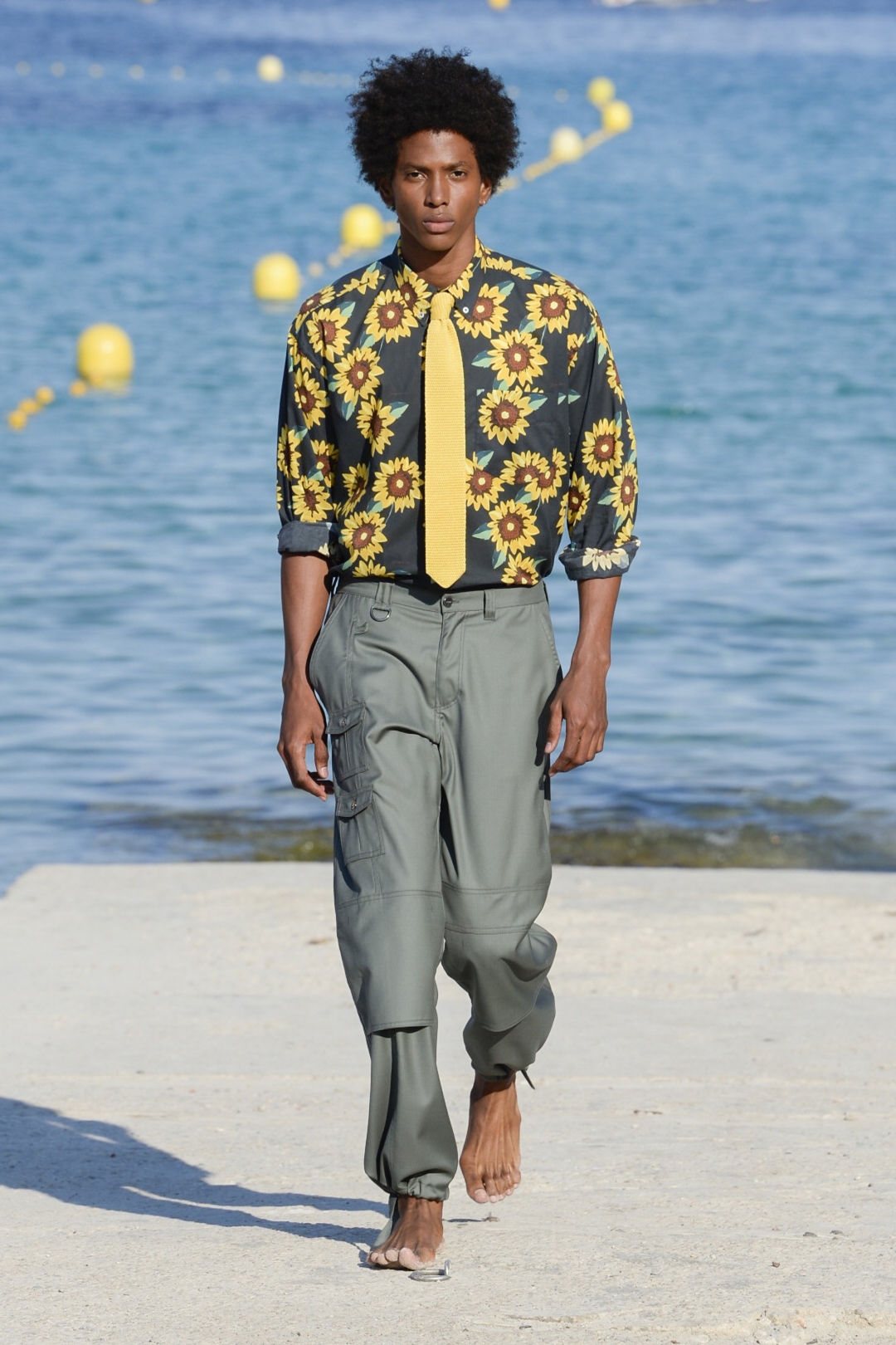 «Я одержим стилем марсельских парней и тем, как модно они выглядят с их синими спортивными костюмами, синими шляпами, синими кошельками и золотыми цепями. Все очень тщательно подобрано, но при этом они не подозревают, что модные», — рассказал Симон за несколько часов перед шоу. И хотя синего в его коллекции было немного (больше желтого — в широченных брюках, рубашках, галстуках и легких толстовках), в остальном все срослось: микс футболок и соломенных шляп, офисных рубашек и ультра-коротких шорт, а также джинсов и растянутых джемперов (прямо как в сентиментальных фильмах по романам Николаса Спарка) показывал, как быть классным в жару вне зависимости от того, идете вы на работу или занимаетесь серфингом.