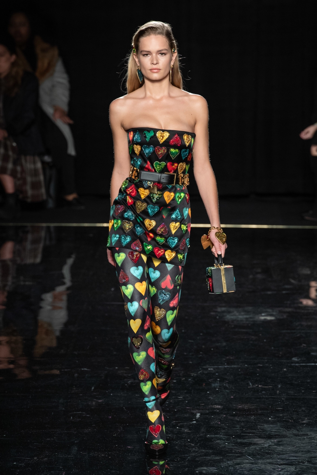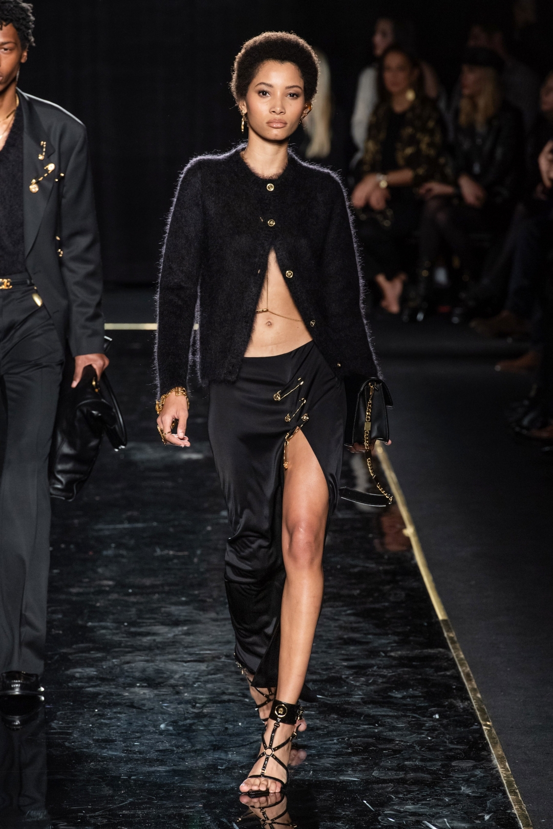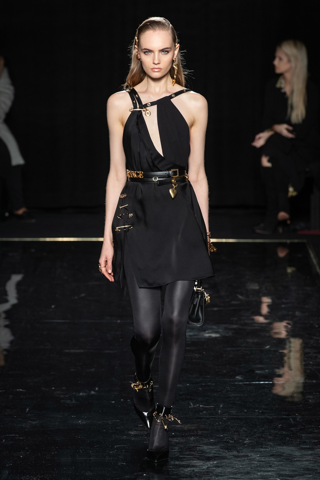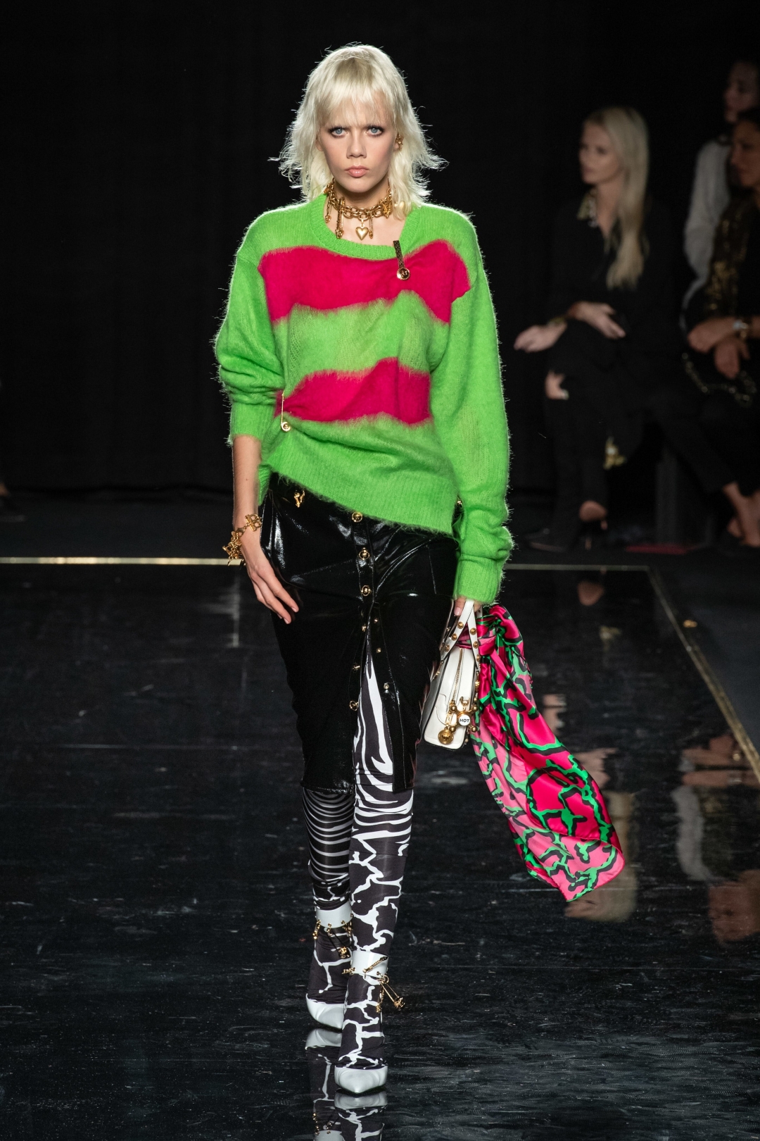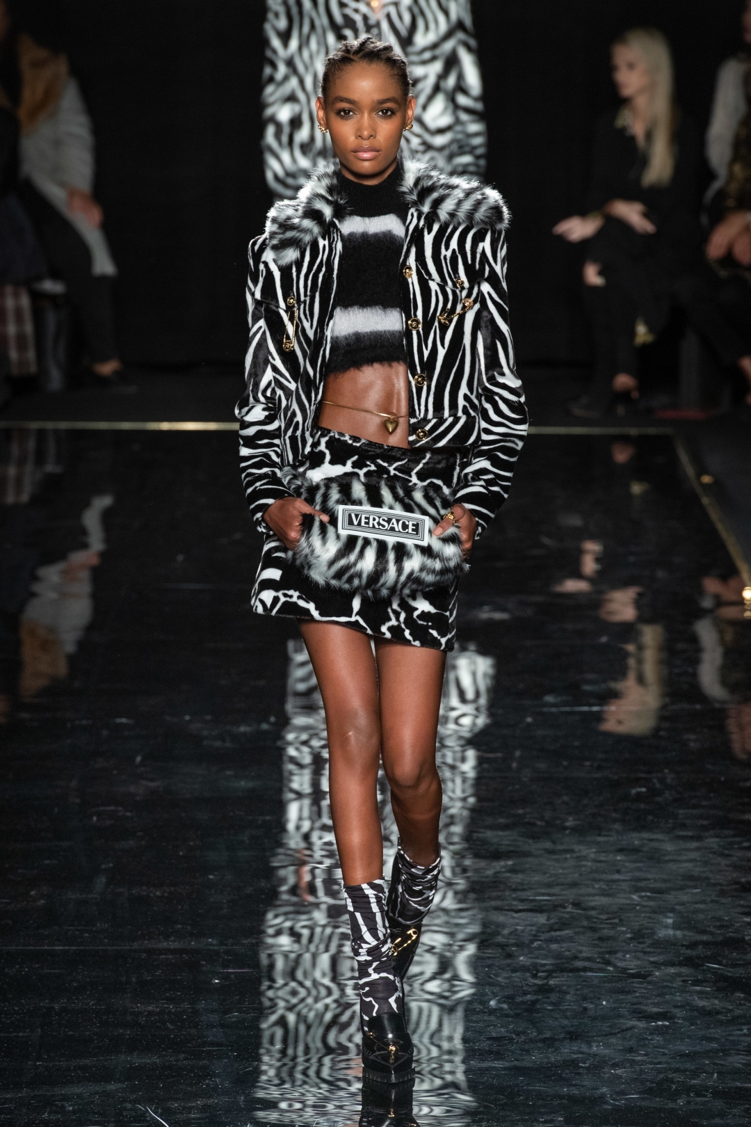 Донателла Версаче продолжает переиначивать коллекции брата и свои собственные: в 2019 году она снова предлагает носить костюмы с позолоченными вензелями из архивов 1994-го, платье Элизабет Херли с декольте и булавками и наряд Дженнифер Лопес с церемонии Grammy в 2000 году, снова представленном в финале показа Эмбер Валлеттой. Но помимо этого, в новой коллекции Versace смешались культурные коды из других модных домов: пятнистые костюмы Roberto Cavalli, зебровые платья Dolce & Gabbana, куртки Prada с розовой оторочкой и виниловые мини Moschino кислотных тонов.