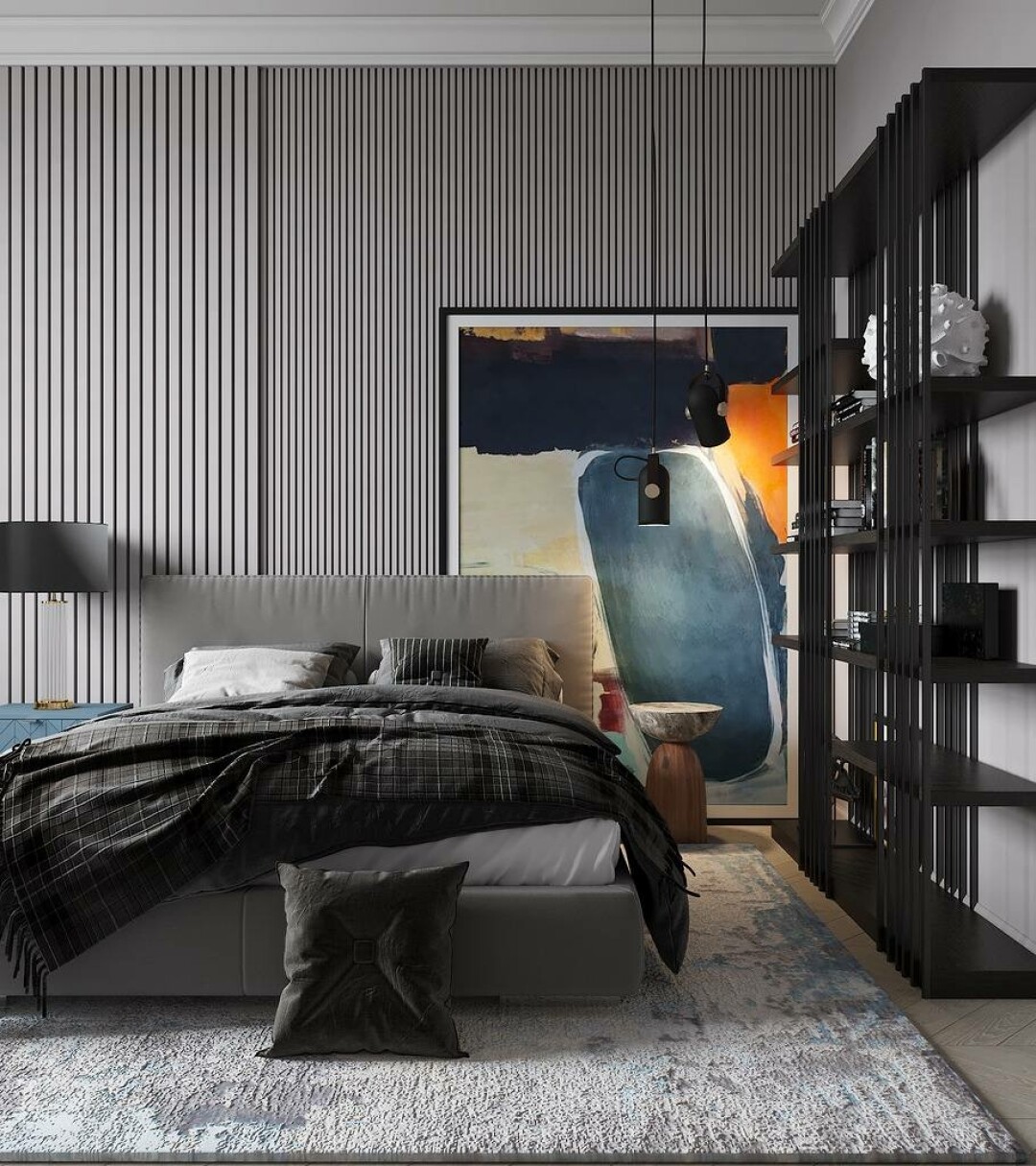 А детскую мальчика украшает комбинированный модульный стеллаж «Арсенал», выполненные из металлических прутьев черного цвета, с деревянными полками. Аккуратные и при этом динамичные детали интерьера, которые придают детским комнатам немного взрослой строгости.