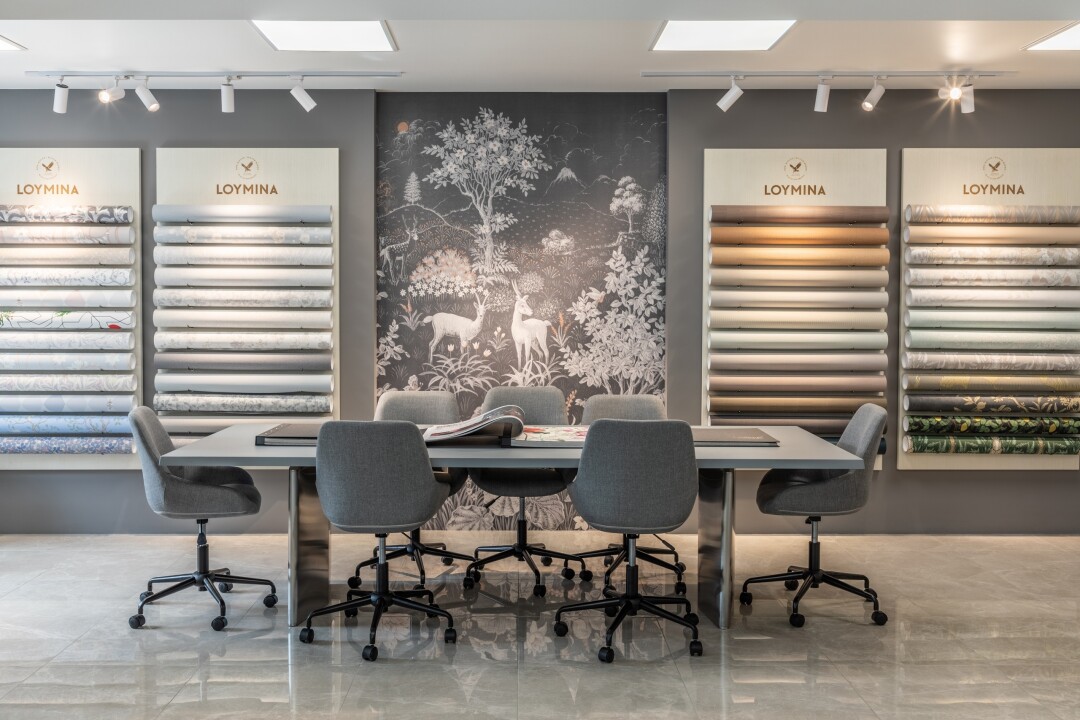 У фабрики более пятидесяти актуальных коллекций, и в салоне «LOYMINA Декор» все они представлены. «Loymina» сотрудничает с художественными студиями по всему миру, в ее команде потрясающие художники и дизайнеры, которые посещают выставки и всегда в курсе всех мировых трендов в области дизайна. На фабрике есть собственная лаборатория по разработке и тестированию различных способов запекания краски, воспроизведения фактурных рисунков (большое количество коллекций имитируют ткани). Тенденция «укутывать стены в текстиль», которая свойственна бренду «Loymina», выглядит очень уютно и красиво, презентабельно и дорого.