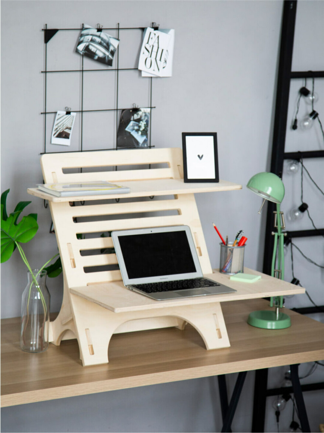 Создатели бренда (под другим именем) начинали с застроек стендами выставок и других мероприятий, но пандемия внесла коррективы и они решили переквалифицироваться под более актуальную повестку, начав оборудовать рабочие места для удаленной работы и учебы. Легкие и компактные (изделие занимает 1 м² пространства) столы из шлифованной березовой фанеры, которые собираются без инструментов, быстро завоевали любовь заказчиков. Благодаря регулируемой высоте столешниц, за столом можно работать не только сидя, но и стоя, а благодаря разной комплектации стол становится настоящим трансформером и может вмещать даже несколько мониторов, плюс он двусторонний, так что за ним могут одновременно работать двое. Бренд также делает подставки для ноутбуков, прикроватные и накроватные столики и мебель на заказ.