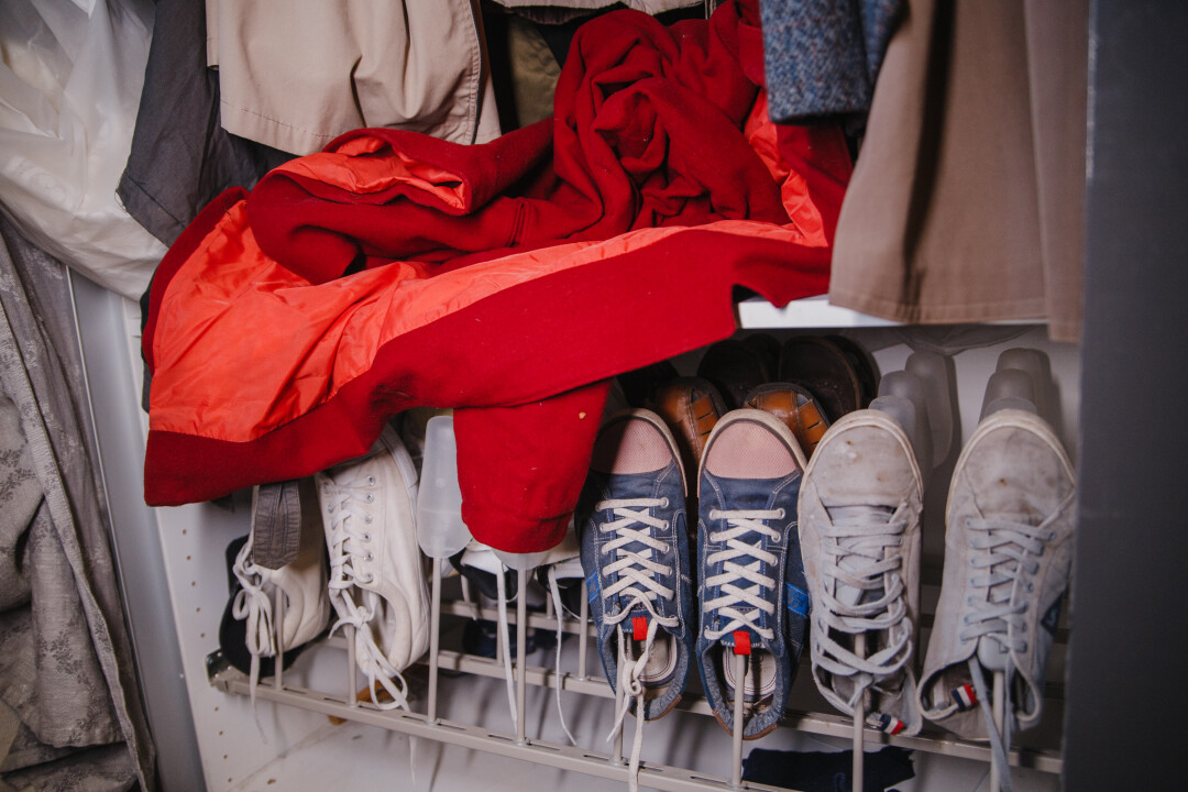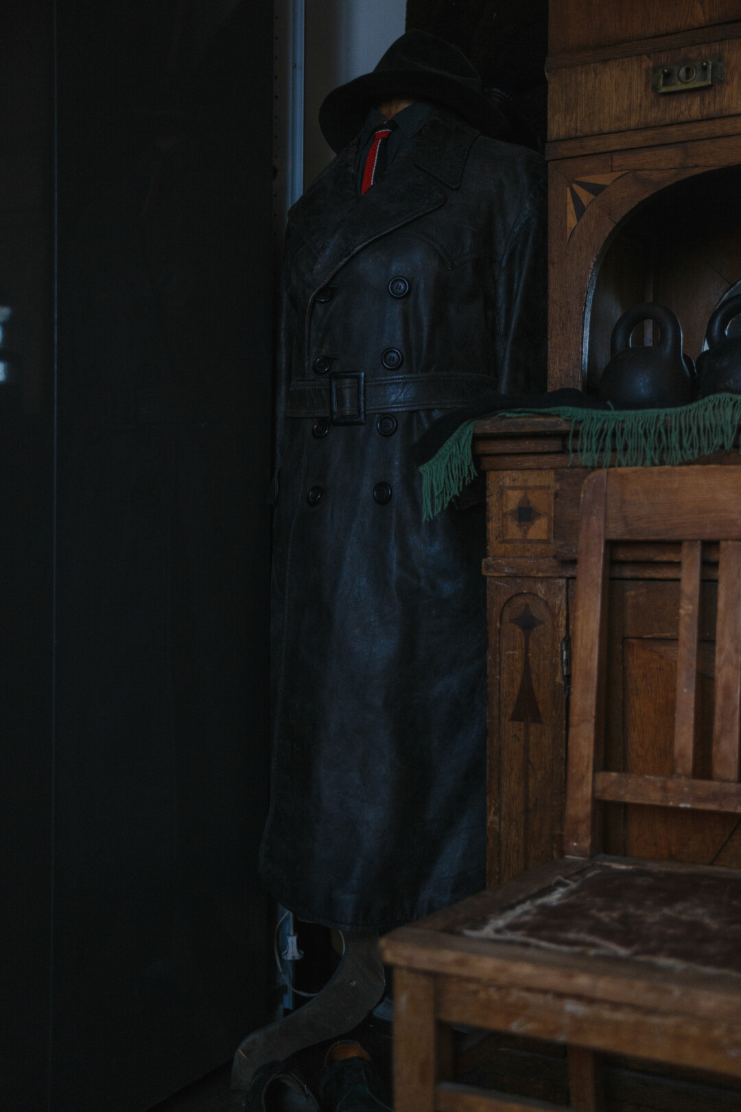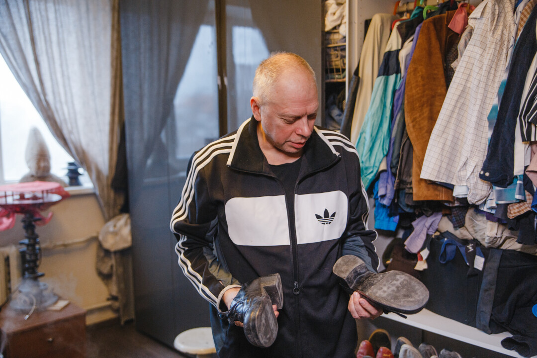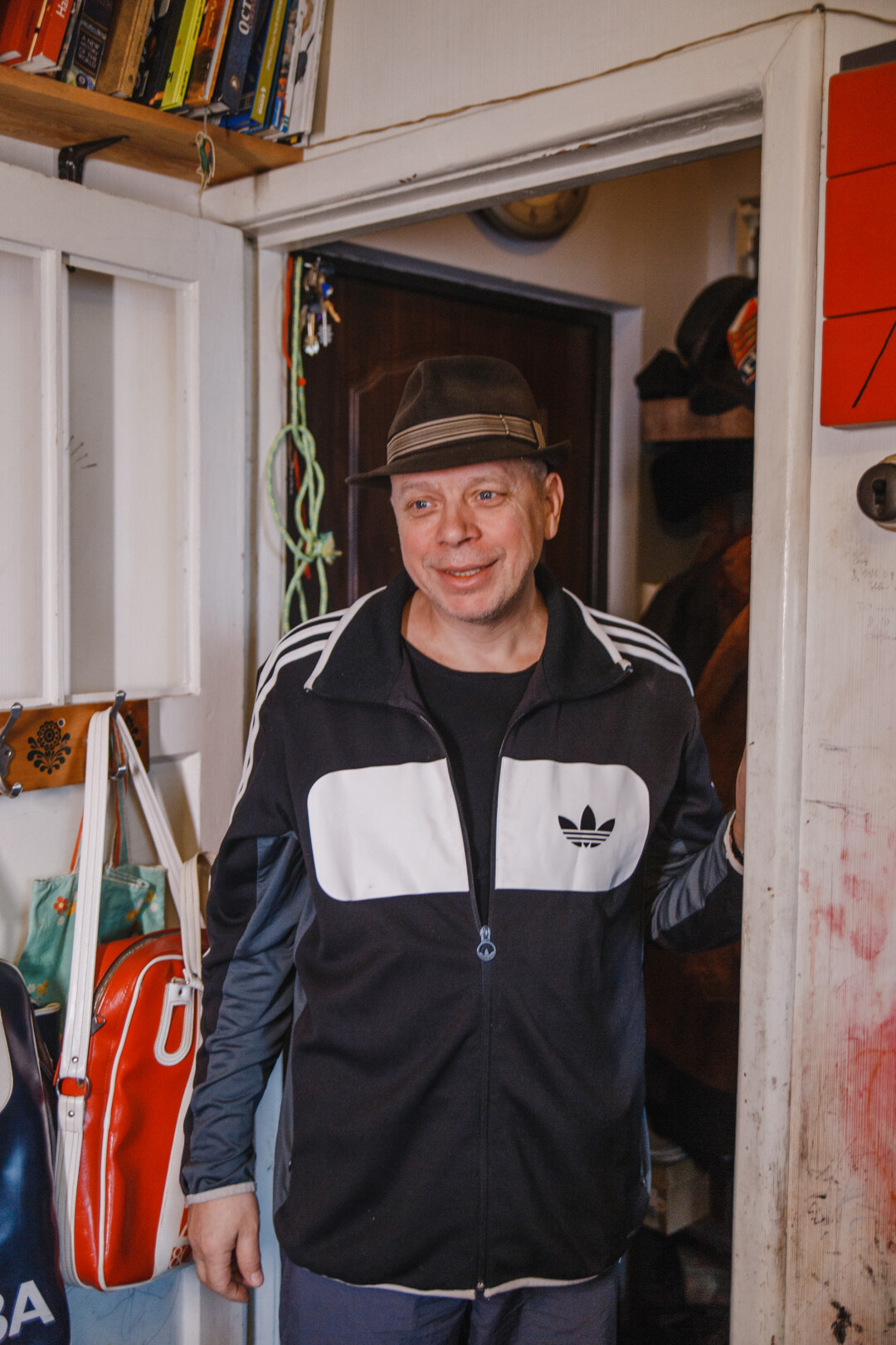 У меня очень большой гардероб. Он полностью забит вещами, но это тоже далеко не всё. Я люблю одеваться в разные времена. Особенно мне нравятся 60-е и 90-е. Я такой человек, который любит создавать время. В гардеробе много шляп. Самая любимая – из Чехии 1968 года. Гоповок, спортивных ветровок из 90-х, штук десять. Есть даже плащ, в котором актер Евгений Цыганов снимался в фильме «Как Надя пошла за водкой». Сам шкаф из прошлой жизни. Помню, купили его с женой, когда дети только родились.