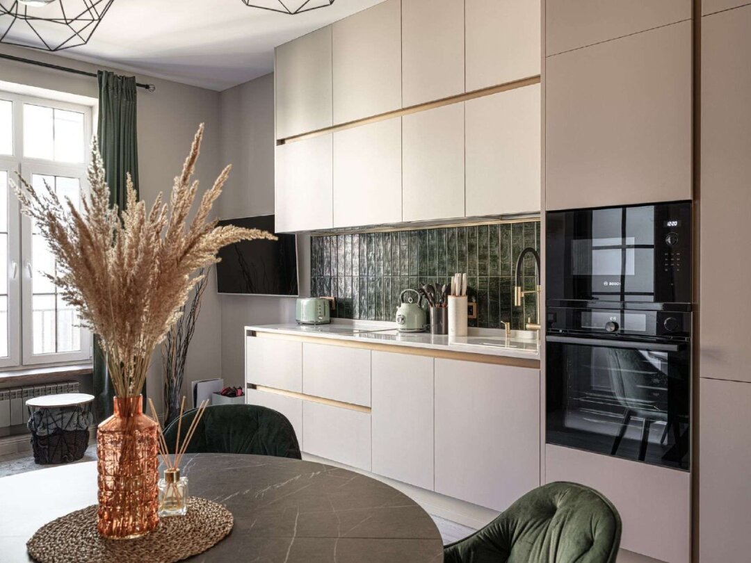 В тренде – функциональные системы хранения без визуального шума, продуманный минимализм. А также природные фактуры, элементы декора в экостиле и благородные оттенки