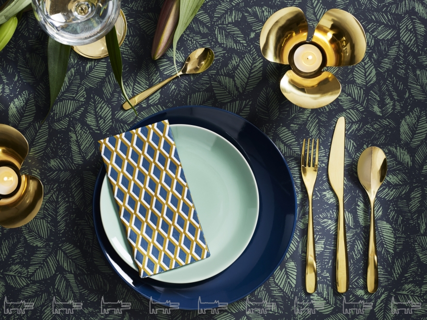 Коллекция сочетает в себе темные цвета, богатые текстуры, благородные материалы и романтичные узоры. Разрабатывая ее, дизайнеры много времени уделили внешнему виду каждого предмета и элемента коллекции, так как именно визуальная составляющая легла в ее основу. Чтобы создать лиричные и запоминающиеся образы, были использованы глубокие оттенки зеленого и бирюзового в сочетании с латунными акцентами. Яркие цветовые вкрапления добавили солнечной энергетики в эту уютную осеннюю серию.
