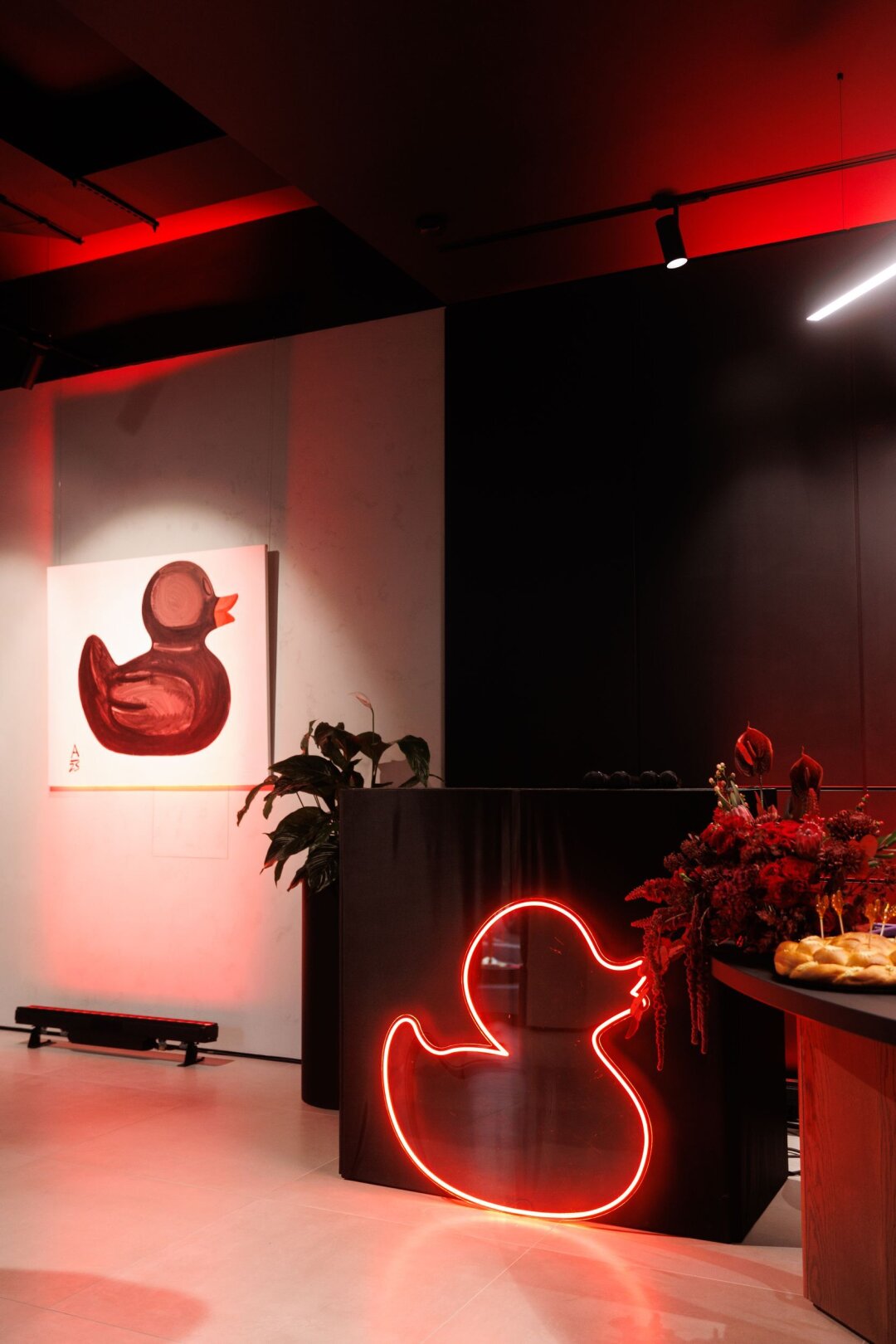 Особое внимание в оформлении пространства уделено арт-деталям. Символ А-Клуба — чёрная утка — стал неформальным знаком принадлежности к сообществу. Она представлена в виде коллекционных скульптур с индивидуальными идентификаторами, размещенных в переговорных, лаунж-зонах и кабинетах. Центральный арт-объект пространства — шахматная композиция, созданная в сотрудничестве с брендом «Хохлома» в чёрно-бело-красной гамме, где фигура утки занимает место короля.