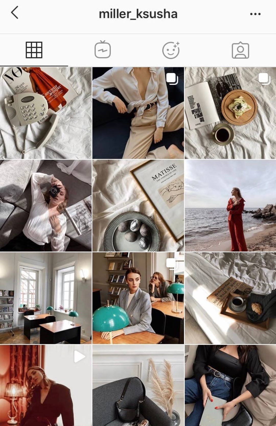 Мне всегда сложно определиться с тематикой, думаю, мой блог больше про лайфстайл. Важно не забывать про первичный смысл Инстаграма – делиться частью жизни. Людям всегда интересно наблюдать за чужой повседневностью и находить в ней общие черты со своей. Обожаю показывать приятную рутину и мотивировать окружающих. Стараюсь делиться подборками книг и фильмов, закулисьем своих фотосъемок, собственными луками, показываю походы за утренним кофе, пишу небольшие тексты о любви.