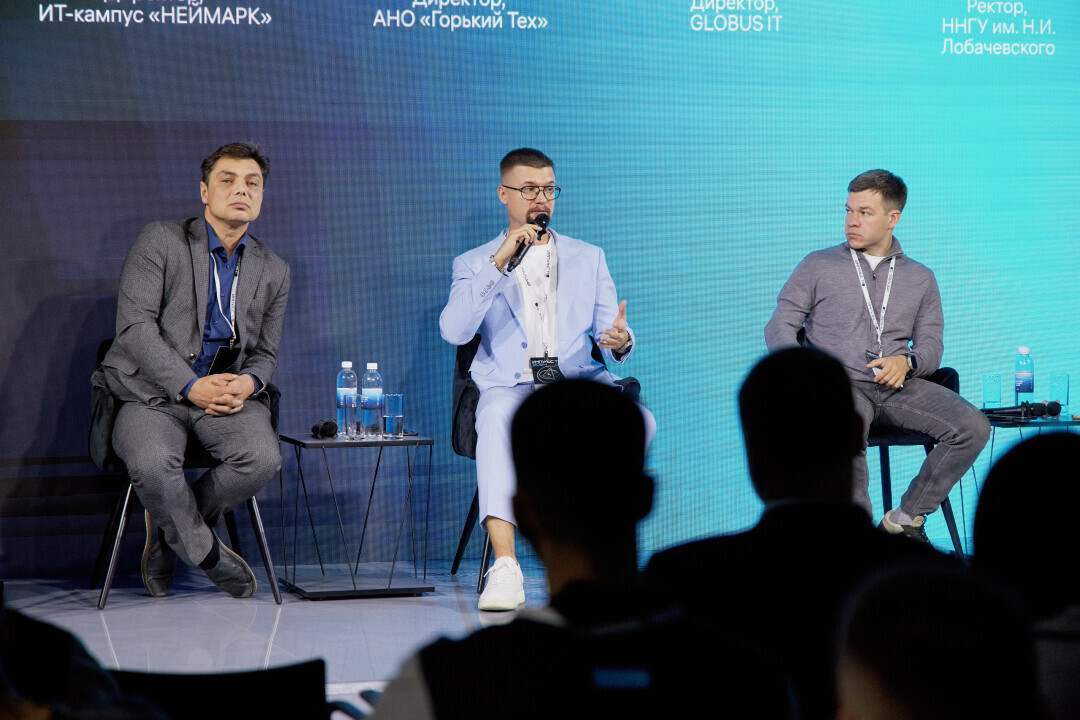 Центральное место в программе дня заняла пленарная дискуссия на тему «Будущее рынка труда: актуализация формы и содержания новых профессий», в которой участвовали эксперты отрасли, руководители ведущих университетов Нижнего и представители органов государственной власти, в том числе Министерства цифрового развития.