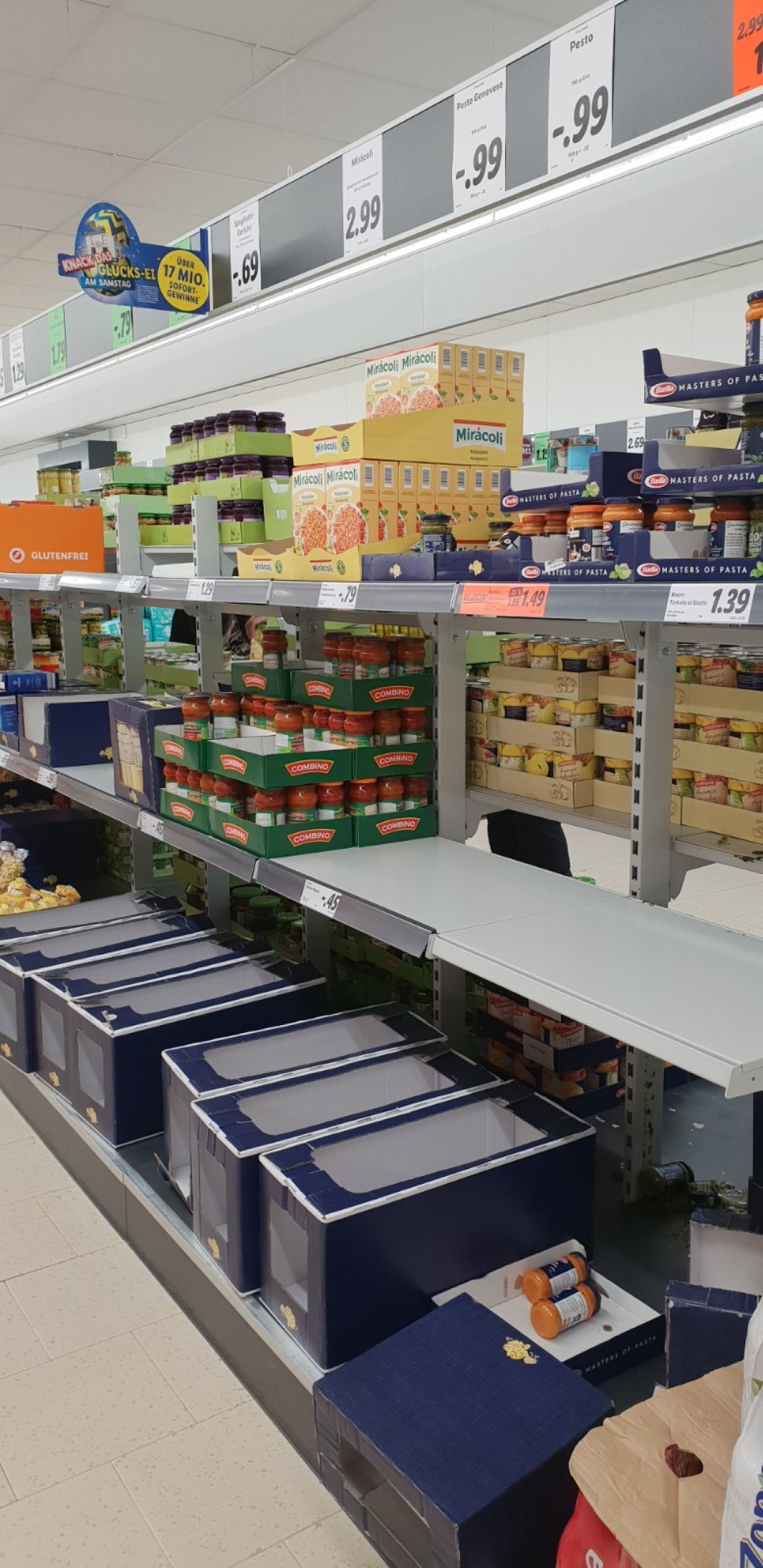 Продукты из магазинов по-прежнему пропадают. По моим наблюдениям, сумасшествие и паника среди людей, к сожалению, усиливаются. Вчера в 6 вечера уже невозможно было купить ни молоко, ни яйца, про туалетную бумагу, мыло и дезинфектоы вообще молчу.