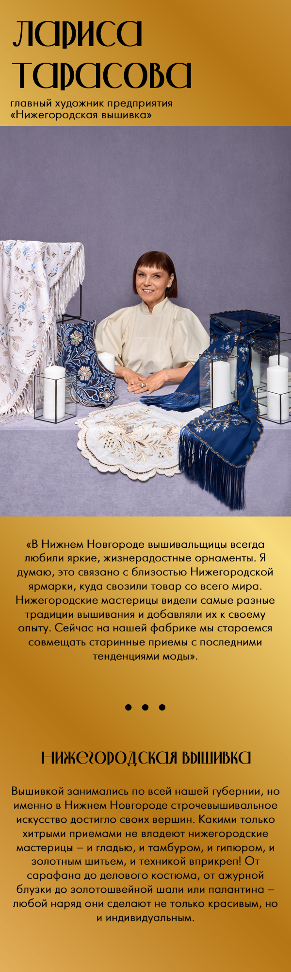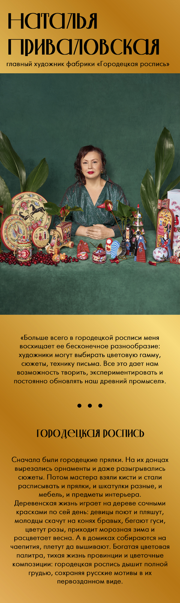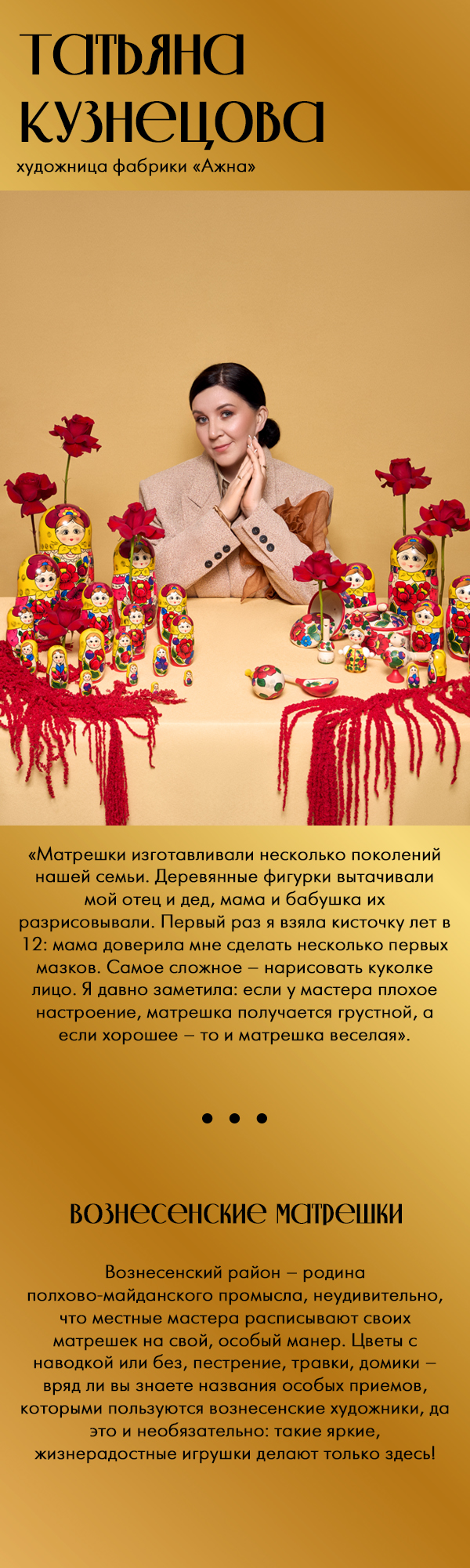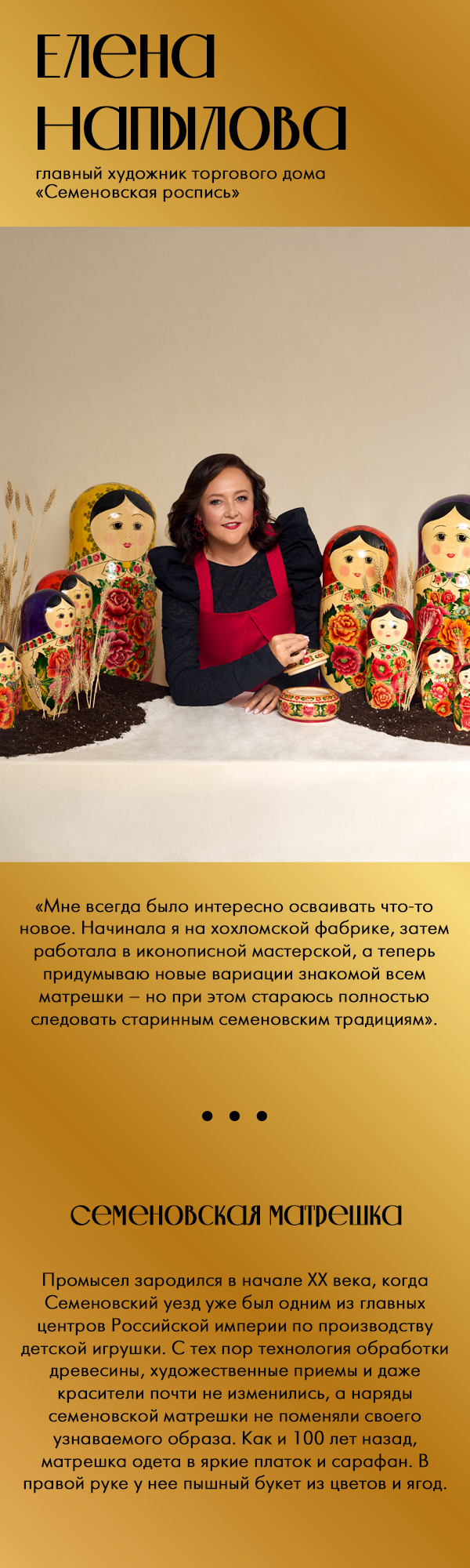 В Шахунье примерить рубаху с узором, вытканным точно так же, как и столетия назад. И, конечно же, взглянуть на село Хохлома в Ковернинском районе, в честь которого и назван знаменитый промысел. Герои нашего фотопроекта – жители этих мест. Из поколения в поколение они передают секреты своих промыслов, из которых и складывается наша общая культурная ДНК.