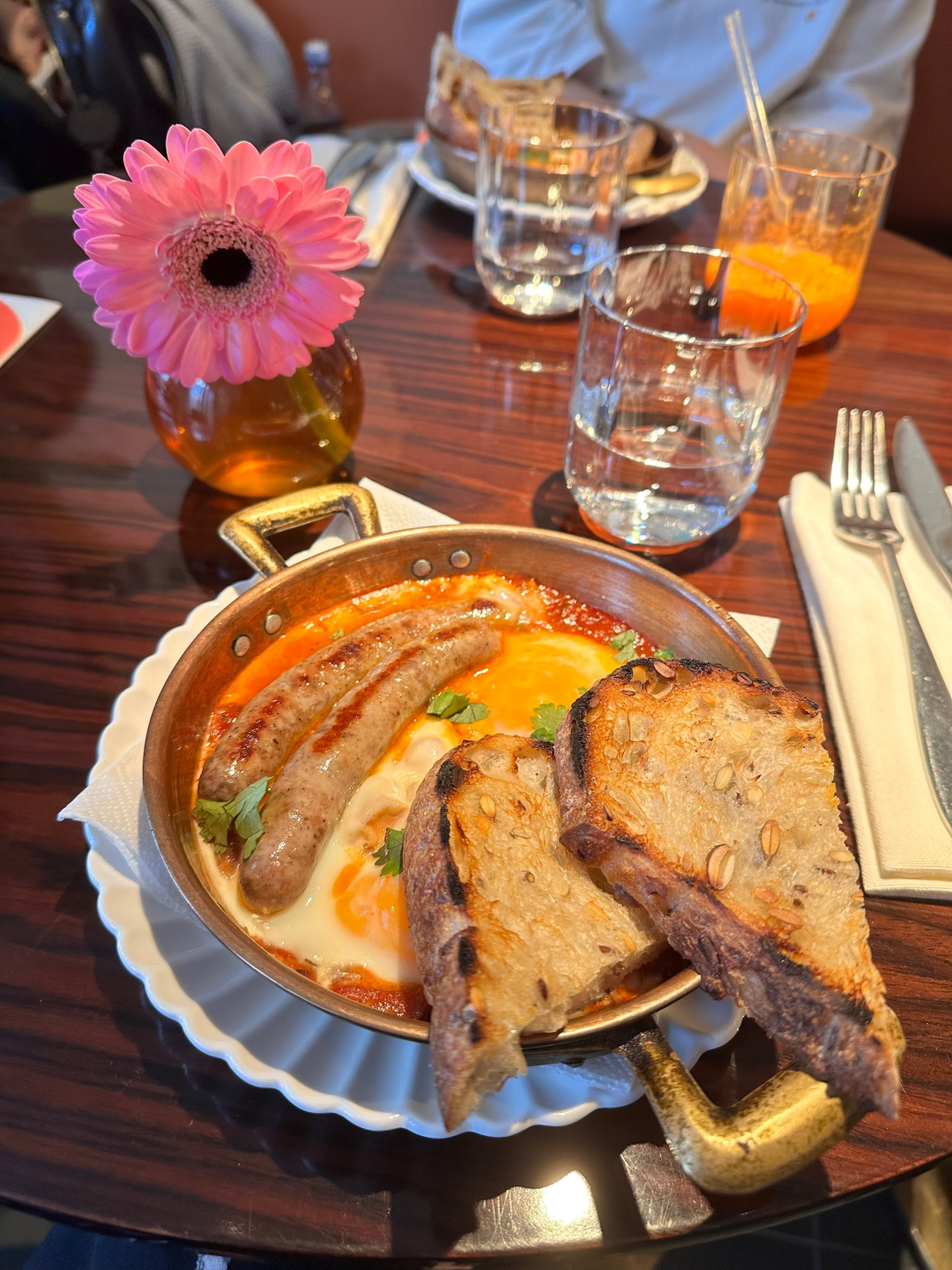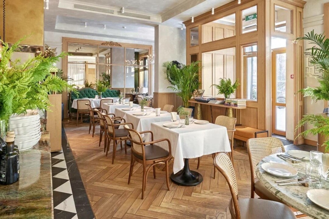 Я долго колебалась, куда бы добавить это бистро, потому что здесь волшебно пронзать вилкой текущий желтком пашот на завтрак. Такие парижские завтраки у Казанского кремля. Но в итоге вписала в ужины, потому что сидеть в мерцании свечей и любоваться нежными тенями цветов на мраморе столиков еще более волнительно.